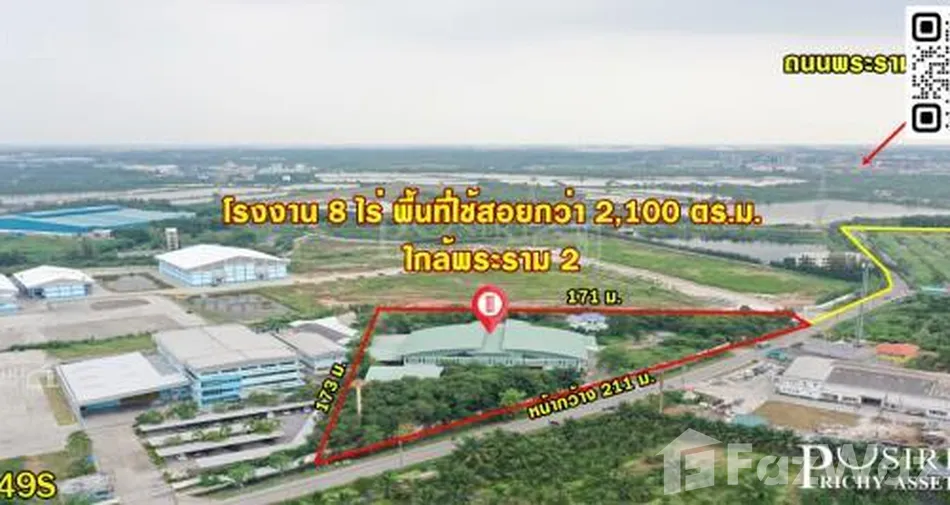 โรงงานสุดคุ้ม บนพื้นที่ 8 ไร่ ใกล้พระราม 2 แค่ค่าที่ก็ท่วมแล้ว หน้ากว้างติดถนนถึง 211 เมตร มาพร้อมทั้งโรงงาน โกดัง สำนักงาน บ้านพักคนงาน หม้อแปลง 800 kva และพื้นที่เปล่าภายในรั้วล้อมรอบ