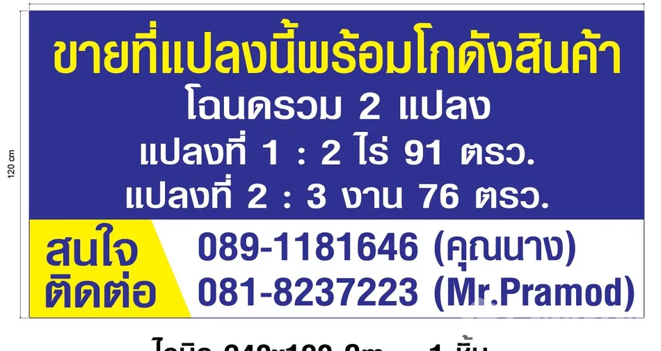 Contact- Kh. Pramod- 0818237223; Kh. Kulkanoak-0891181646Description & Neighbourhood ContextThis property is currently used as a warehouse but offers strong potential for residential or mixed-use redevelopment due to its strategic location. The site benefits from dual access, with frontage not only on Huey Pong‑Nong Bon Road but also on two side roads, enhancing connectivity for logistics operations or future residential planning. Adjacent properties include a mix of industrial and residential plots, reflecting the dynamic growth of Tambon Huay Pong. Nearby parcels are suitable for warehouses, factories, or residential estates, providing context for versatile redevelopment opportunities. The area is experiencing steady demand driven by proximity to industrial estates, transport nodes, and regional infrastructure improvements. Adjacencies & Strategic Benefits