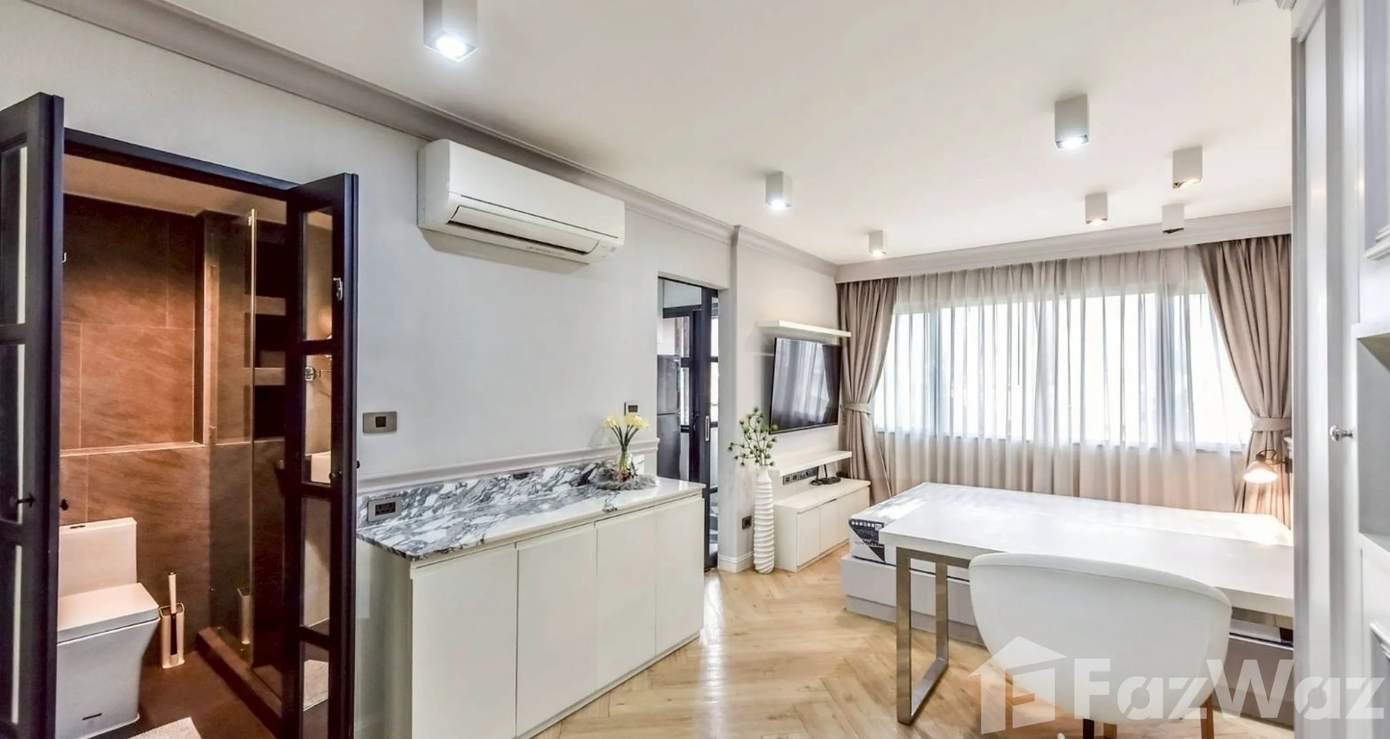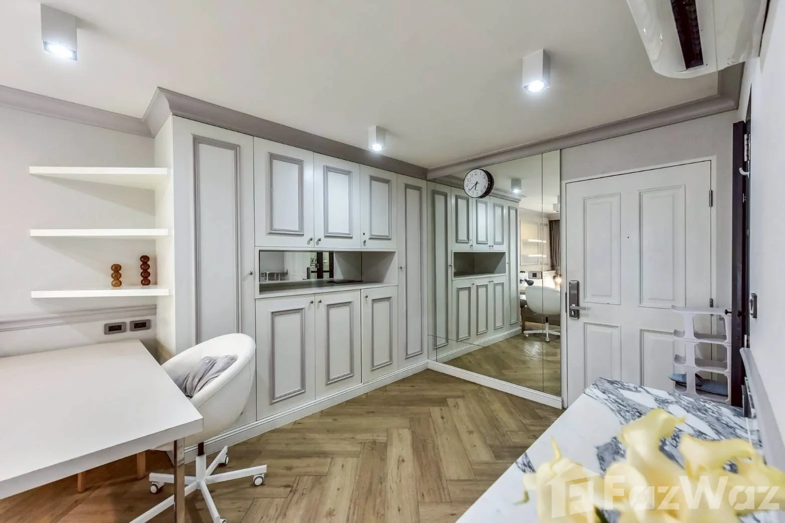 ห้องสวย สไตล์โมเดิร์น โทนขาว-เทา ดูโปร่ง โล่ง