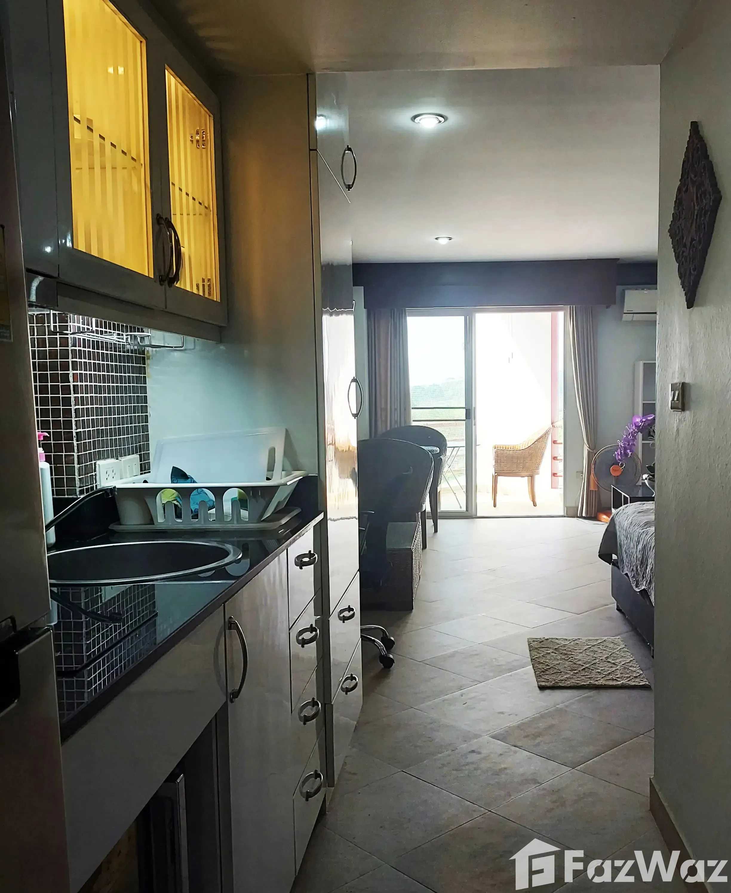 6th floor condo with pool and sea view in Sea Sand Sun, Mae Rampueng Beach   This 39,32 sqm condo is located on the 6th floor of Sea Sand Sun Residence & Condominium near the 14 km long Mae Ramphueng Beach east of Rayong   The home is a Studio condo with a shared living room and bedroom, as well as a kitchen, a bathroom and a balcony.   The kitchen is equipped with a fridge and freezer, electric stove, microwave  extractor hood, sink and European-style cabinets.   The bathroom is fully tiled. The living room is fully furnished and has a wardrobe and a new AC.   In front of the building there is a large swimming pool with plenty of relaxation areas all around. On the ground floor of the building there is a reception and here, too, plenty of space for relaxation and own meals. The back of the condo offers sea and mountain views.   The facility is guarded 24 hours a day by guards.   There are concerns that there is no store, such as 7 Eleven, within walking distance. However, those who live here use motorbike couriers from Grab and 7 Eleven, among others. Shop for at least 100 THB at 7 Eleven and the home delivery is free.   At a distance of about 300 meters there is first and foremost this 14 km long beach with all conceivable services. It is about 9 km to Rayong city and 11 km to Ban Phe by ferry to Kho Samet Island   Video:   Year of construction: 1994   Thai Quota condo   Maintenance fee: 18,000 Baht / year   ID: AFT-SSS603   Price: 990,000 THB   Naina Rayong Co., Ltd.   www.nainarayong.com