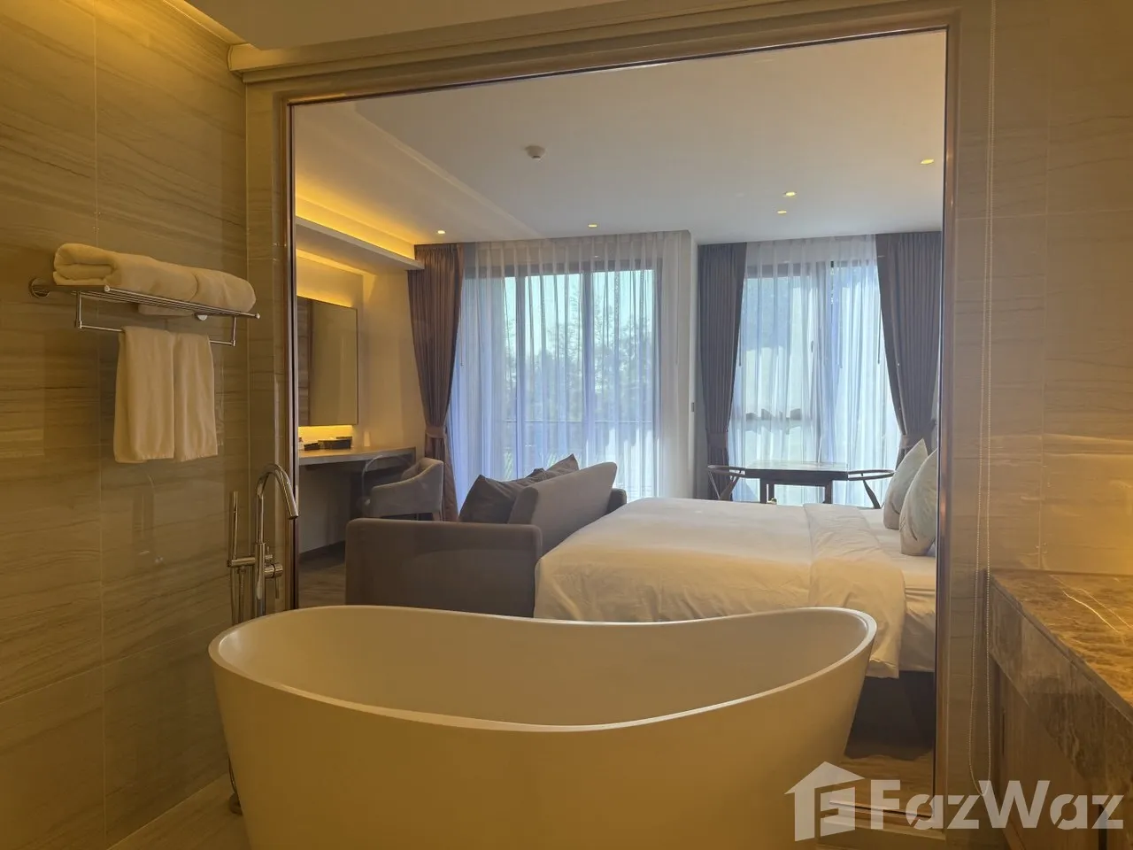 คอนโดมิเนียมสุดหรู ที่นำเฟอร์นิเจอร์จากแบรนด์ชั้นนำมาใช้ในการตกแต่งภายในห้อง ต้องบอกเลยว่าเป็นอะไรที่ทันสมัยและโมเดิร์นมาก ๆ เลยค่ะ ห้องพักของที่นี่นั้นมีให้เลือก 2 รูปแบบด้วยกันคือ สตูดิโอ และ 1 ห้องนอน ขนาดภายในห้องพักไม่เล็กและใหญ่เกินไป เหมาะสำหรับการพักอาศัยอยู่ 1-2 คน ที่สำคัญตั้งอยู่หากจากหาดเพียง 100 เมตรเท่านั้น ใกล้คอนโดมีสถานที่ Cafe Del Mar และภูเก็ตแฟนตาซีซึ่งมีฝูงชนนับล้านเดินทางมาเยี่ยมชมการแสดงยอดนิยมมากมาย