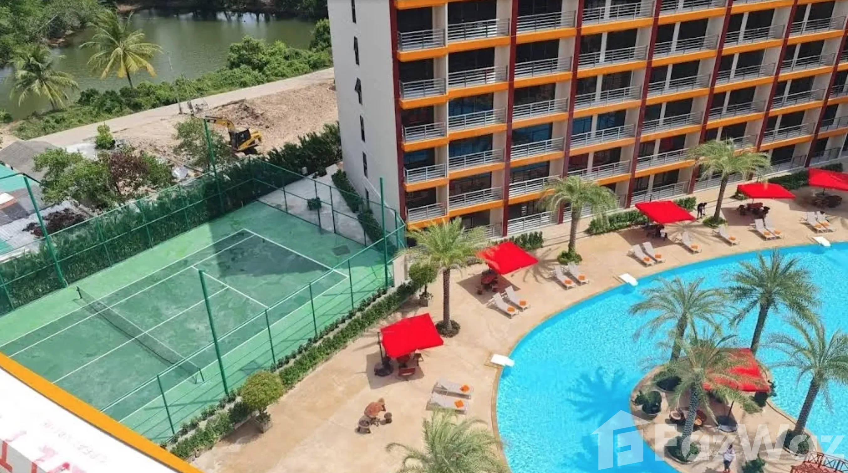 สระว่ายน้ำขนาดใหญ่และเทนนิสขนาดใหญ่ อาคารใหม่ ร้านค้า ร้านอาหาร บริการนวด ใกล้ทะเลสระใหญ่และสนามเทนนิสขนาดใหญ่ อาคารใหม่ ร้านค้า ร้านอาหาร บริการนวด ทะเลใกล้เข้ามาแล้ว