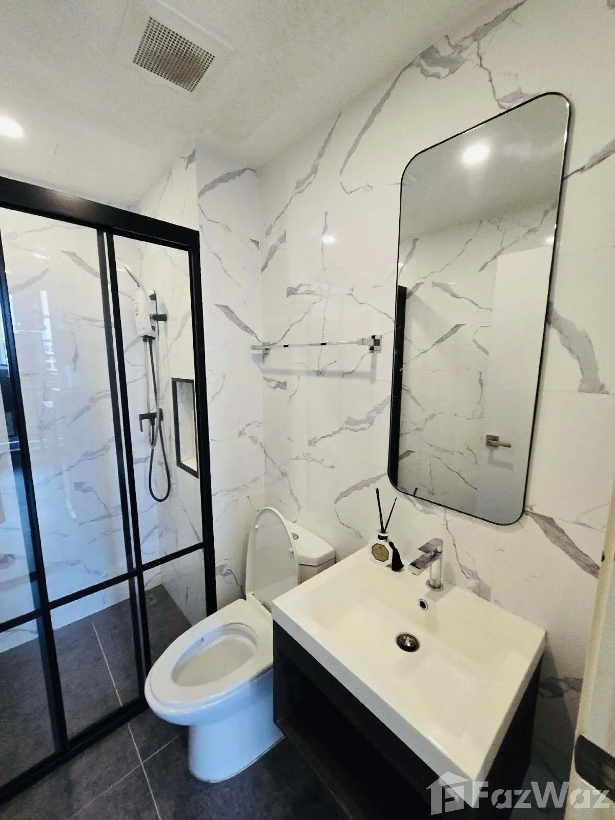 โครงการใหม่อยู่บนถนนรัชดาภิเษก 3 อยู่ในซอยสถานทูตจีน หาง่าย ใกล้กับฟอร์จูนทาวน์ โลตัส ฟอร์จูนทาวน์ และเซ็นทรัลพระราม 9 ถือว่ามีความอุดมสมบูรณ์มาก ๆ มีทั้งแหล่งช้อปปิ้ง ร้านค้า และร้านอาหารเป็นจำนวนมาก โครงการที่นี่ตอบโจทย์สำหรับคนที่ชื่นชอบในไลฟ์สไตล์มินิมอลมาก ๆ ดีไซน์ได้น่าสนใจมาก มีพื้นที่ส่วนกลางทั้ง สระว่ายน้ำ ฟิตเนส มินิเธียร์เตอร์กลางแจ้ง ที่จอดรถ แต่น่าเสียดายที่พื้นที่ส่วนกลางแต่ละอย่างค่อนข้างจำกัดมาก ๆๆๆๆๆ เล็กมาก ที่จอดรถก็จอดรถได้น้อยมากค่ะ ส่วนถ้าใครใช้รถสาธารณะก็สะดวกหน่อย เพราะอยู่ใกล้กับสถานี MRT ทางโครงการยังมีรถ Shuttle bus รับส่งให้อีกด้วย ตัวห้องก็ออกแบบได้ดี ฟังก์ชันครบ เหมาะสำหรับอาศัยอยู่ 1-2 คนเท่านั้นค่ะ พื้นที่ค่อนข้างจำกัดและโครงการมีให้เลือกห้องแค่ขนาด 1 ห้องค่ะ