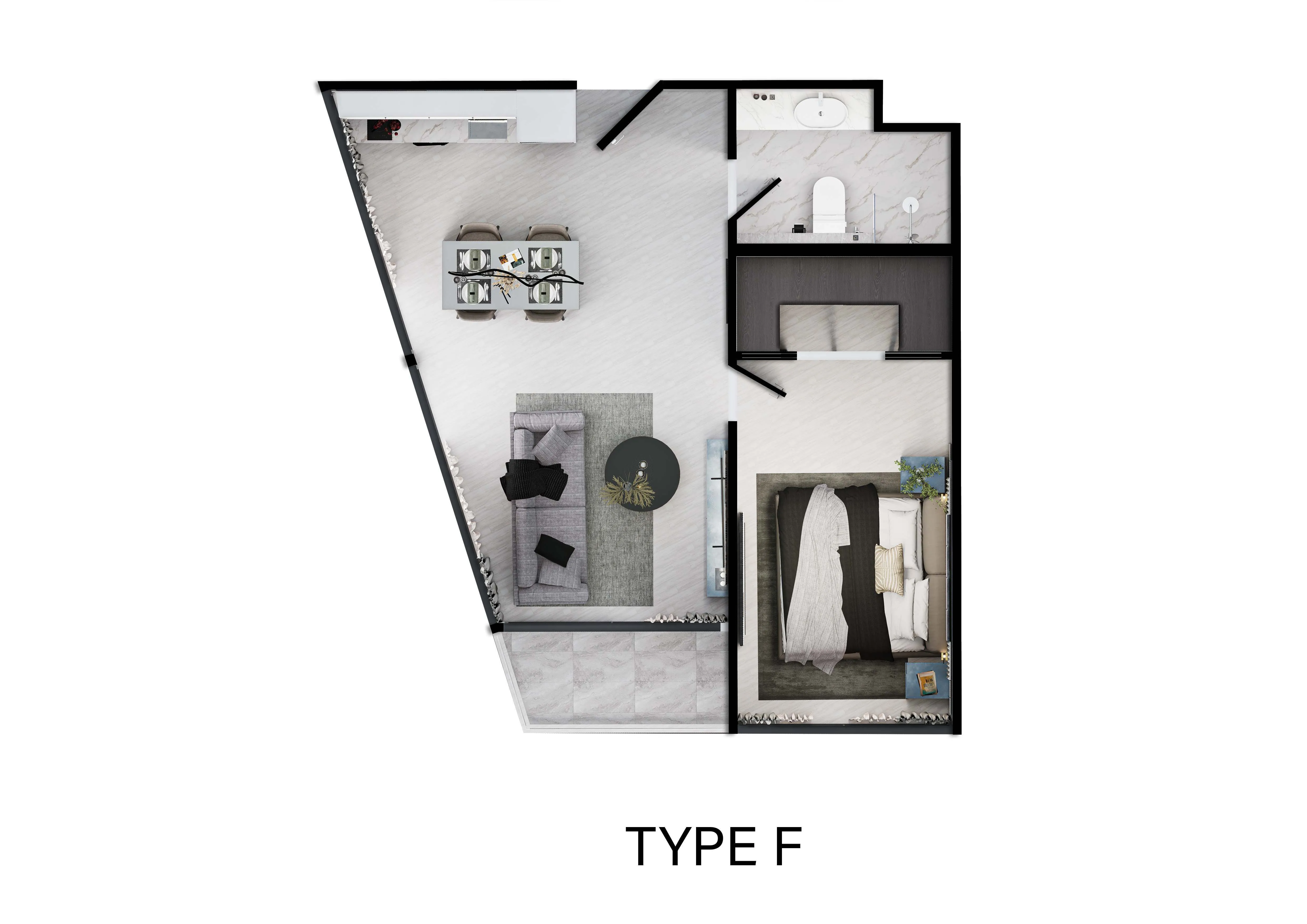 เป็นยูนิตที่ขายพร้อมกับการตกแต่งแบบบิ้วท์อิน ซึ่งก็คือการติดตั้งเฟอร์นิเจอร์แบบฝังติดไปกับผนัง ไม่สามารถเคลื่อนย้ายได้ ยกตัวอย่างเช่น ชั้นวางทีวี ในห้องรับแขก เคาท์เตอร์ครัว เฟอร์นิเจอร์แบบหล่อด้วยปูน รวมไปถึงแบบตอกติดไปกับพื้นหรือผนัง