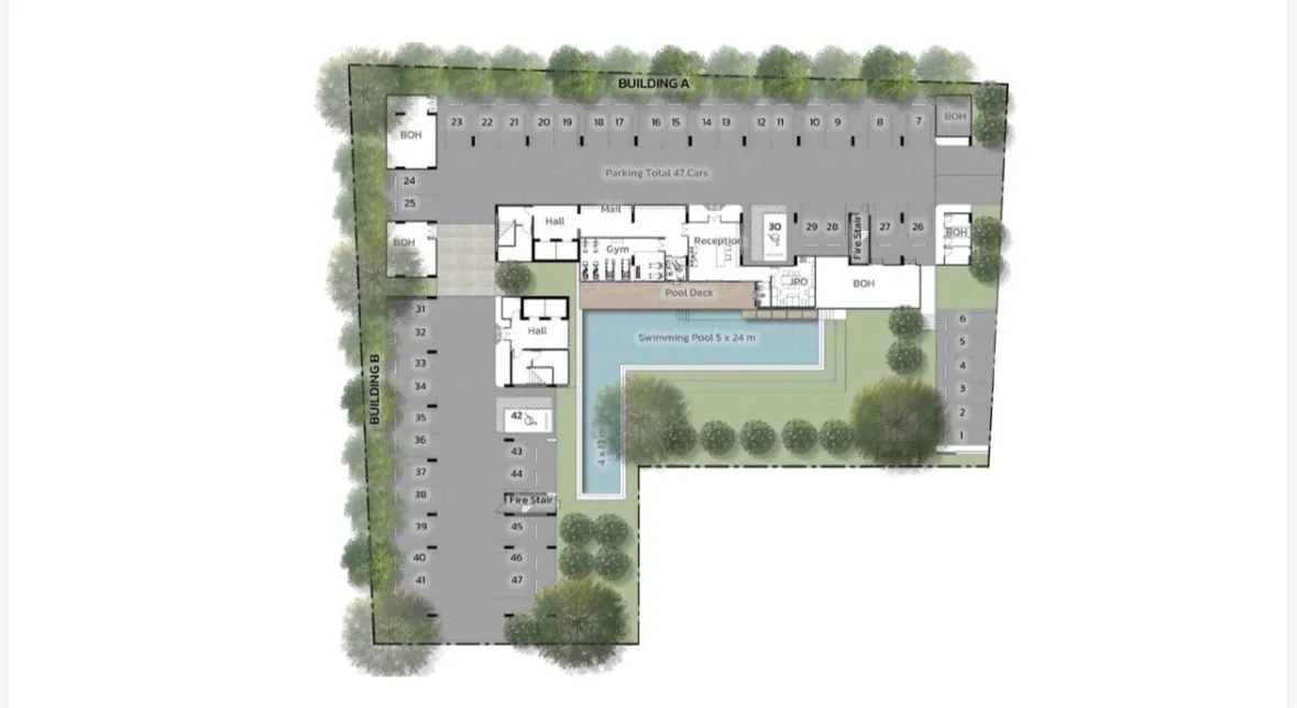 ถือสัญญาเช่าระยะยาว รวมเฟอร์นิเจอร์ วิวสระว่ายน้ำ
