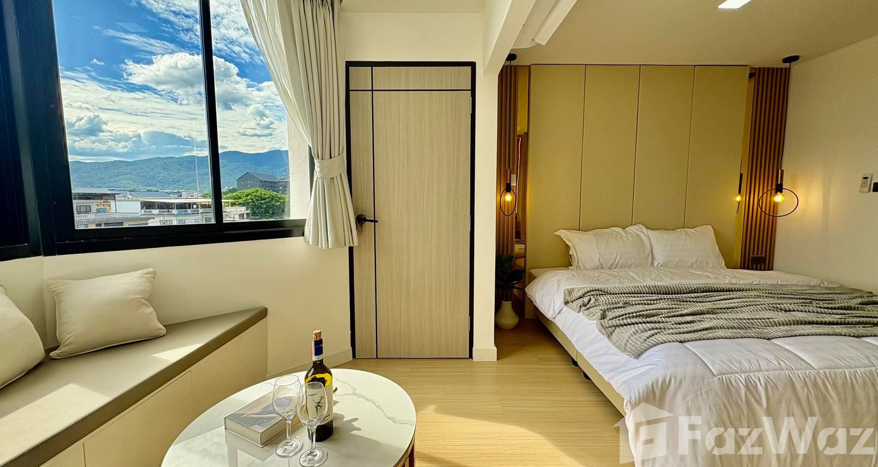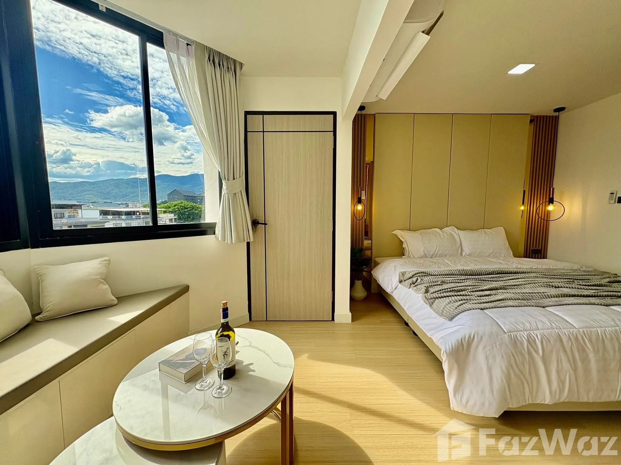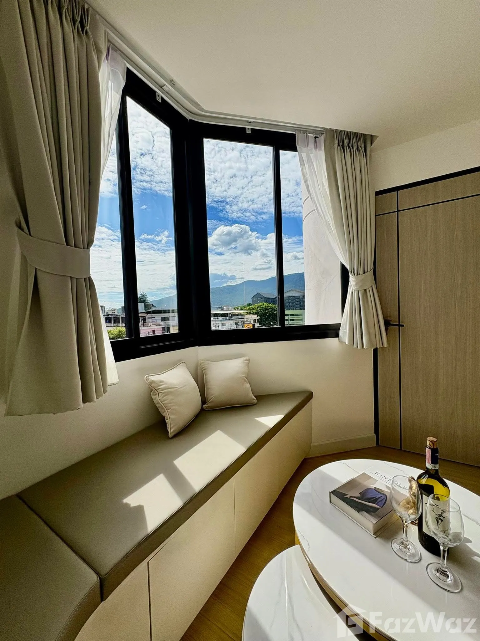ห้องสวยมากตกแต่งสไตร์ยุโรป วิวเมืองและวิวภูเขา สามารถมองเห็นได้ทั้งจากห้องนั่งเล่นและห้องครัว และห้องน้ำมีอ่างอาบน้ำ