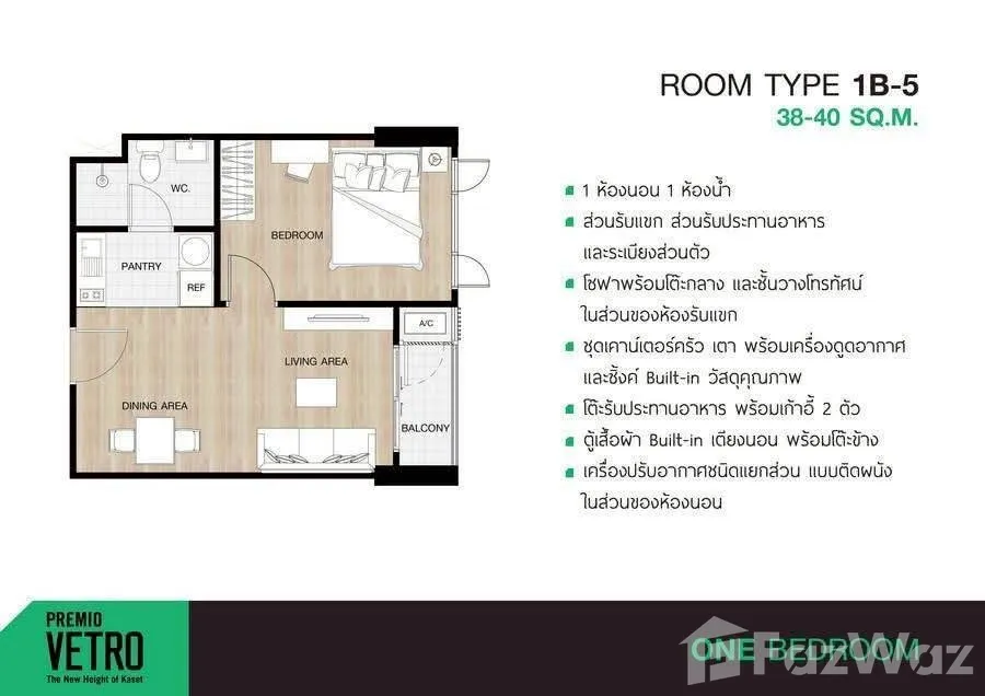 ขาย คอนโด 1 ห้องนอน ในโครงการ Premio Vetro (พรีมีโอ เวโทร)