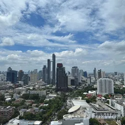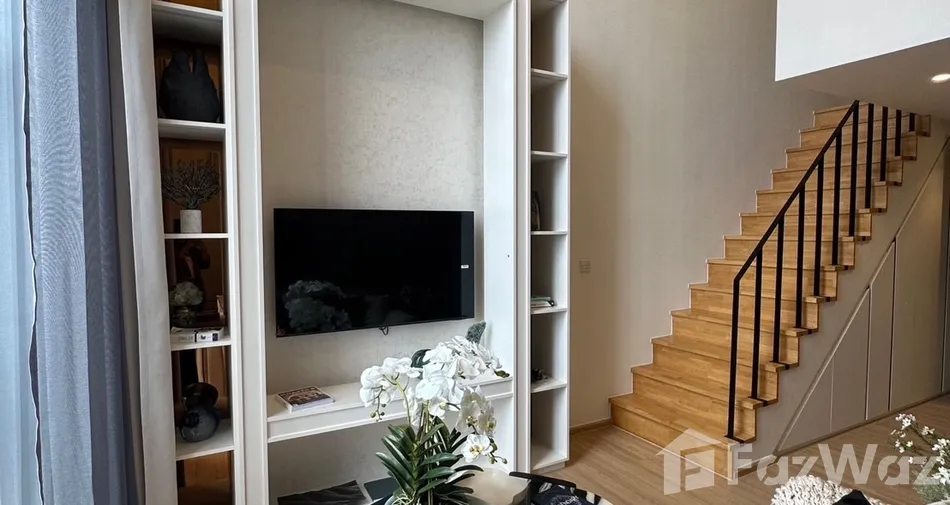 ห้องดูเพล็กซ์ขนาด 42.57 ตร.ม. บนชั้น 28 ของโครงการ Maru Ekkamai 2 มาพร้อมความสูงเพดานแบบดับเบิลวอลุ่มถึง 5.5 เมตร สร้างมิติของพื้นที่ แสงธรรมชาติ และความโดดเด่นทางสถาปัตยกรรมที่หาได้ยากในคอนโดใจกลางเมือง