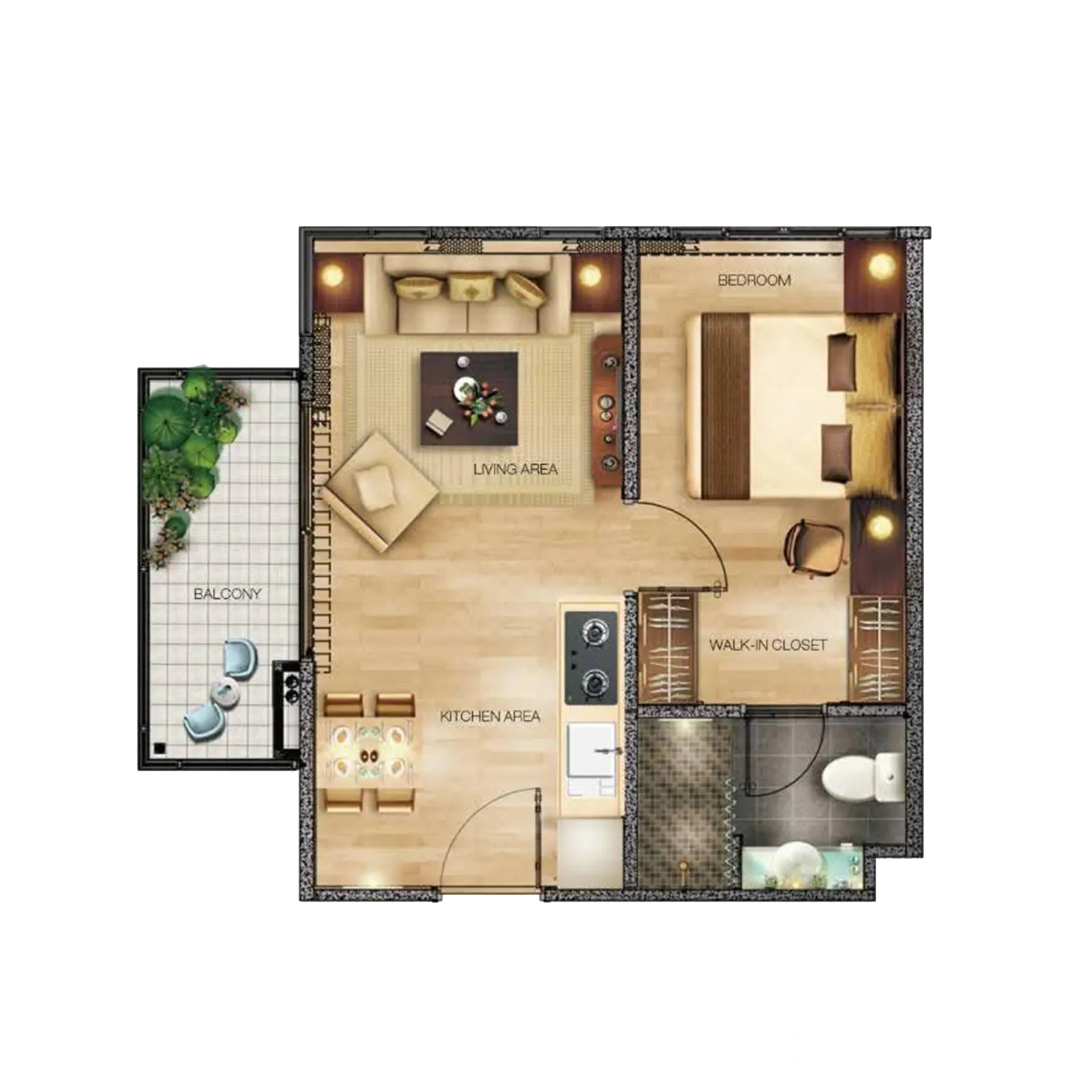 เป็นยูนิตที่ขายพร้อมกับเฟอร์นิเจอร์ครบชุด ที่เรียกได้ว่าเพียงแค่ยกกระเป๋าเสื้อผ้าเข้าไปก็สามารถอยู่อาศัยได้ทันที โดยมักจะมีเฟอร์นิเจอร์ตั้งแต่โซฟา ชั้นวางทีวี ในห้องรับแขก หรืออุปกรณ์เครื่องครัวทั้งหมด รวมไปถึงโต๊ะอาหาร ไล่เรียงไปยังเตียงนอนและตู้เสื้อผ้า ในห้องนอน (รายละเอียดปลีกย่อยอื่นๆ ขึ้นอยู่กับแต่ละยูนิต)
