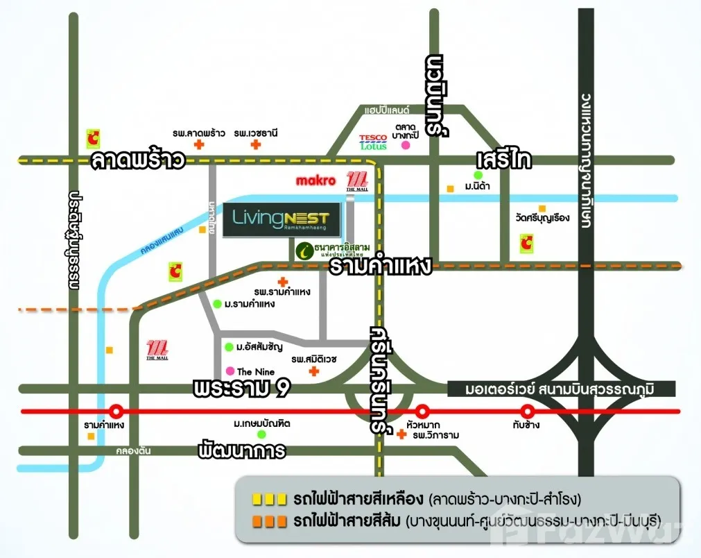 ARL หัวหมาก เป็นแอร์พอร์ตลิงค์ที่ใกล้ที่สุด โดยห่างจากโครงการ ลิฟวิ่ง เนสท์ รามคำแหง ไปประมาณ 2.9 กม.