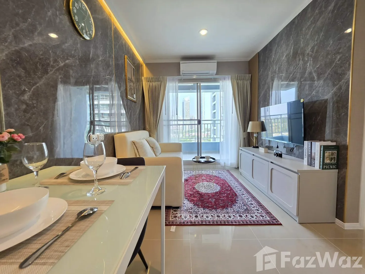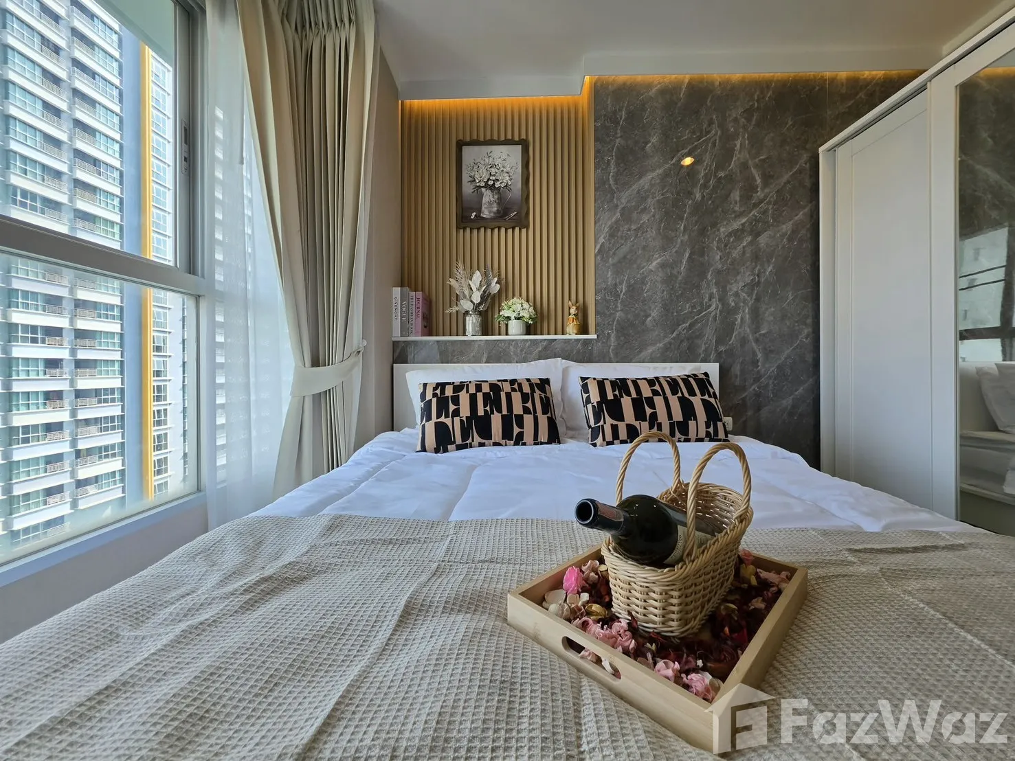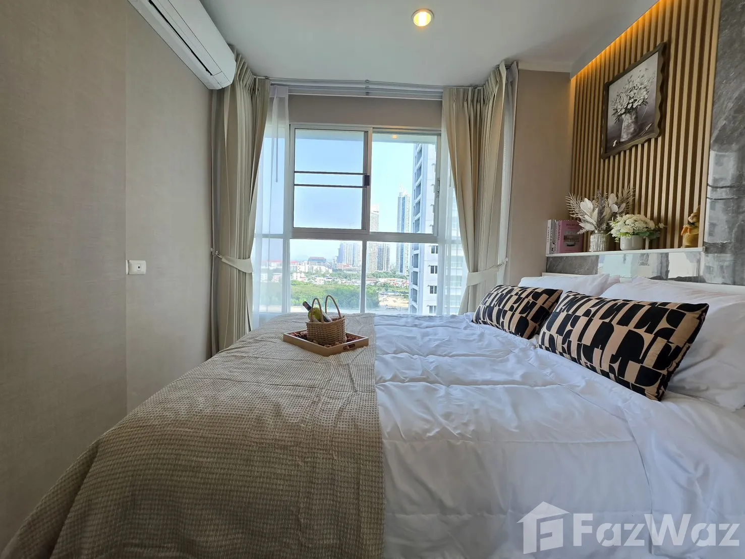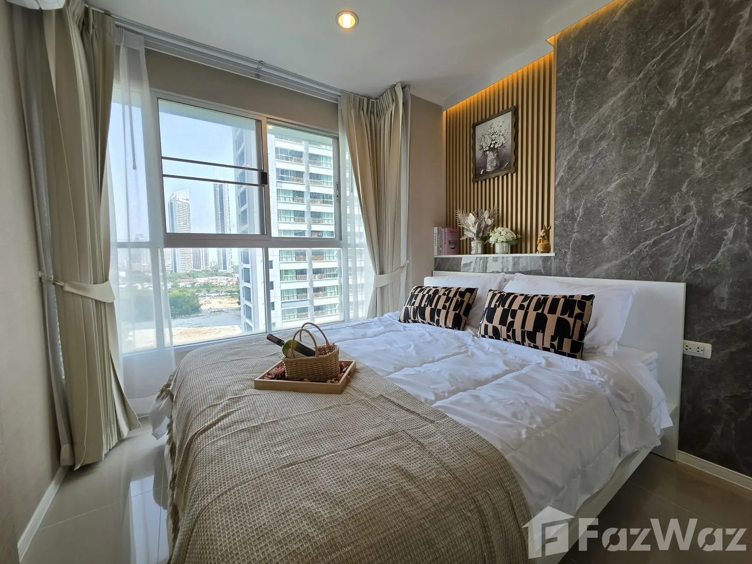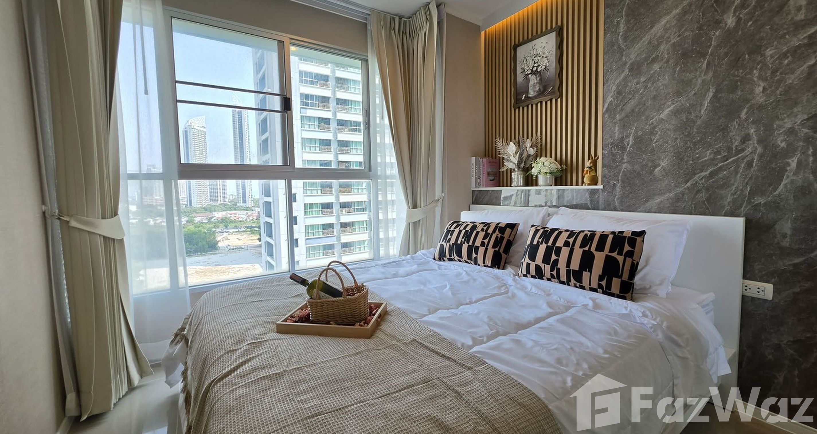 โครงการขนาดใหญ่ ตั้งติดริมชายหาดจอมเทียน คงไม่ต้องบอกว่าวิวจากห้องจะสวยงามมากแค่ไหน เป็นซีวิวที่หันออกทะเลแบบไม่มีอะไรกั้น สามารถมองเห็นทะเลในมุมกว้างได้จนสุดสายตา บรรยากาศดีมาก โครงการมีพื้นที่ส่วนกลางที่ครบครัน มีสระว่ายน้ำขนาดใหญ่กลางแจ้ง และที่จอดรถกว้างขวาง อาศัยอยู่ชั้นที่ 24 ขนาด 1 ห้องนอน ภายในตกแต่งด้วยเฟอร์นิเจอร์มาให้ครบ พร้อมมุมครัวขนาดเล็ก น่าเสียดายที่นี่ไม่อนุญาตให้นำสัตว์เลี้ยงเข้าอยู่อาศัย ไม่แนะนำให้อาศัยกันแบบครอบครัว เพราะห้องค่อนข้างเล็กไปหน่อย แต่หากอาศัยกับคู่รักมีขนาดที่กำลังเหมาะมาก ทำความสะอาดง่ายดี