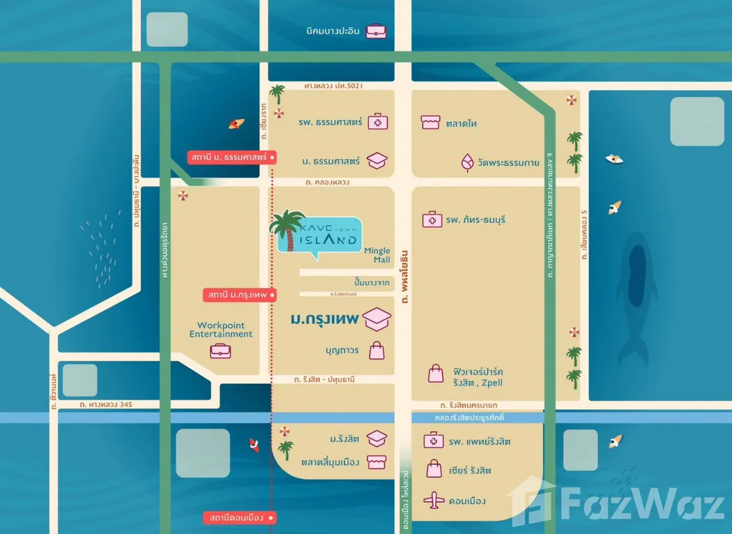 Kave Town Island ติดมหาลัยกรุงเทพ รังสิต 1นอน ชั้น5 ตึก D