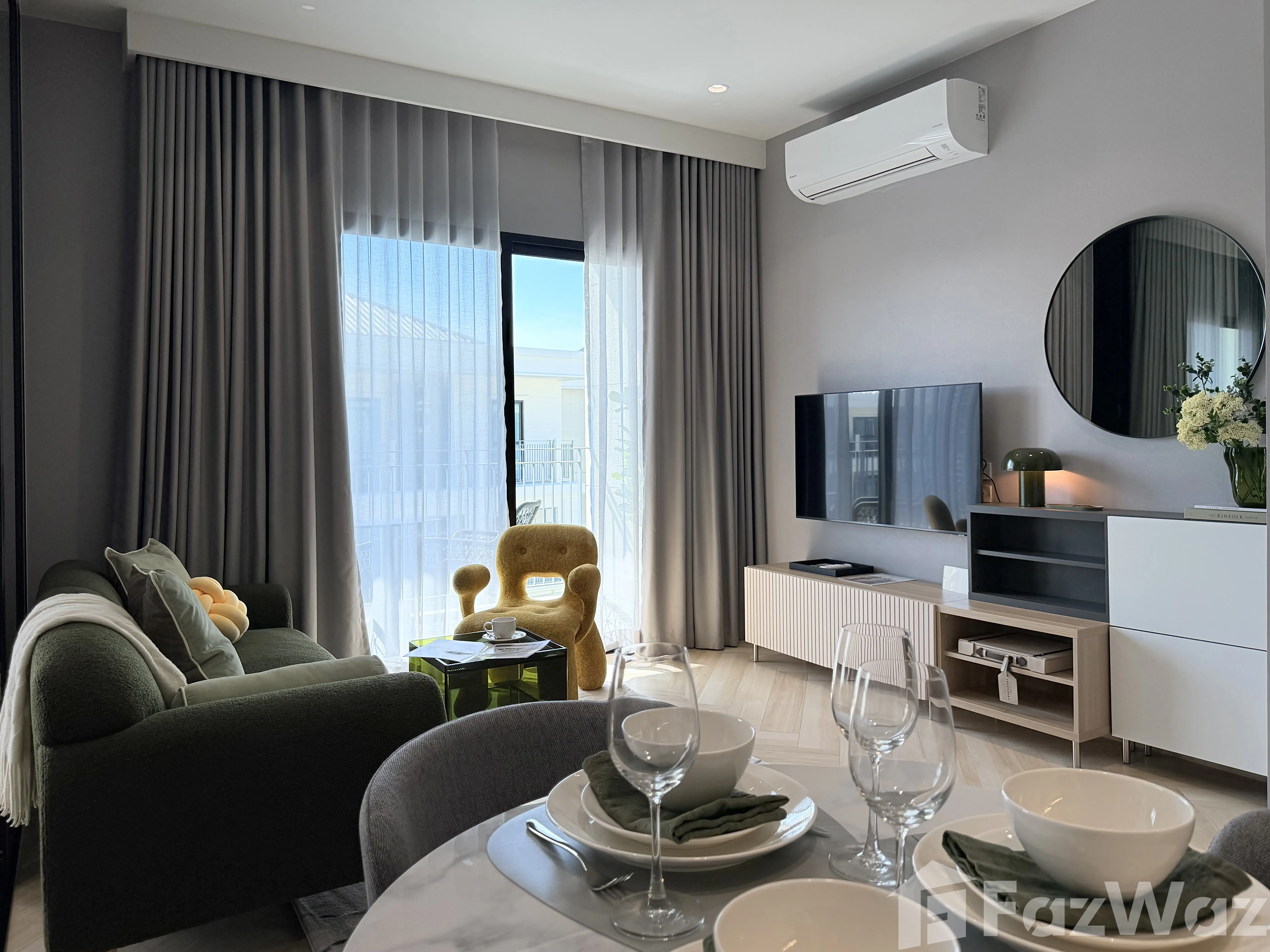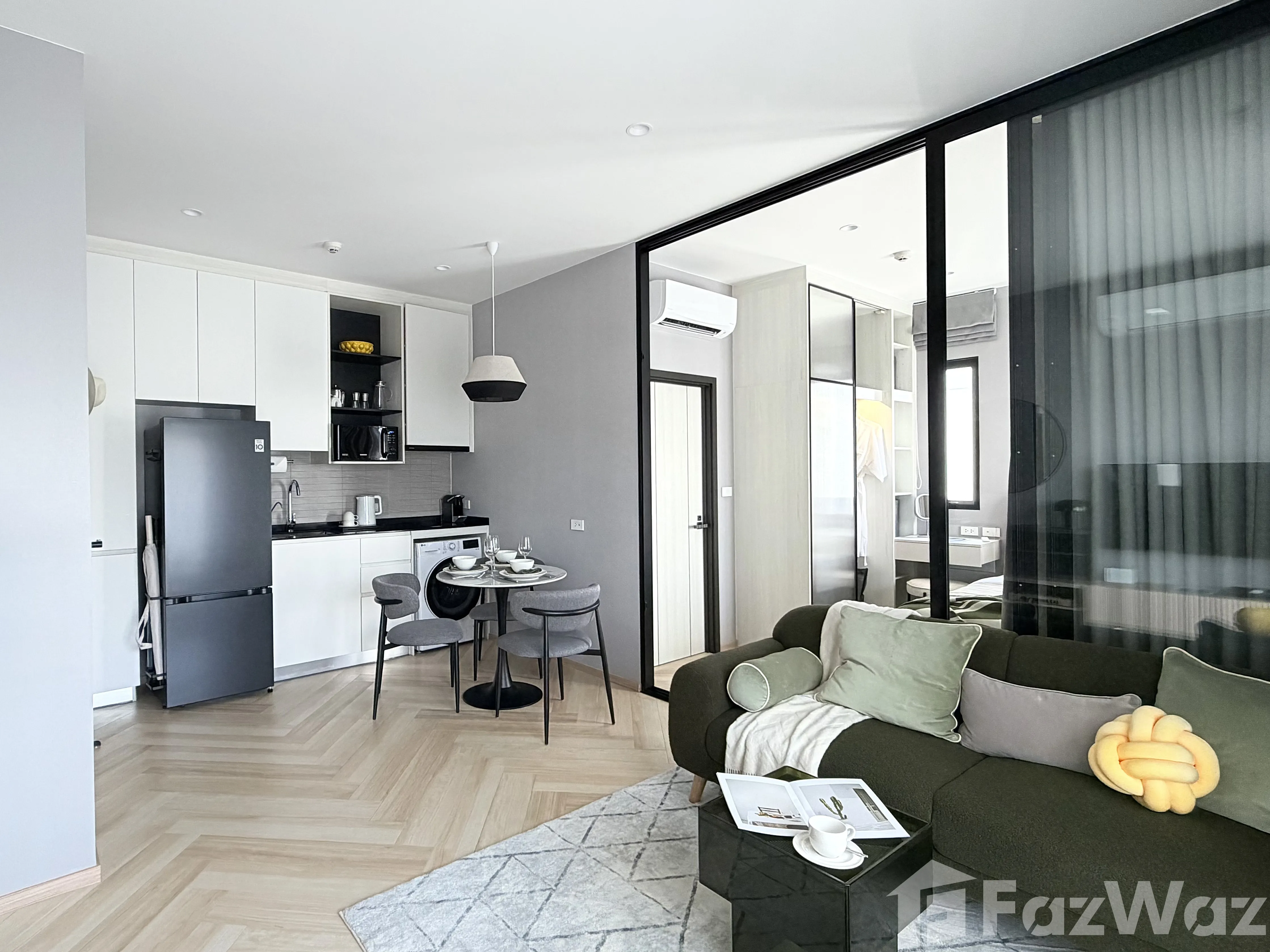 เป็นยูนิตที่ขายพร้อมกับเฟอร์นิเจอร์ครบชุด ที่เรียกได้ว่าเพียงแค่ยกกระเป๋าเสื้อผ้าเข้าไปก็สามารถอยู่อาศัยได้ทันที โดยมักจะมีเฟอร์นิเจอร์ตั้งแต่โซฟา ชั้นวางทีวี ในห้องรับแขก หรืออุปกรณ์เครื่องครัวทั้งหมด รวมไปถึงโต๊ะอาหาร ไล่เรียงไปยังเตียงนอนและตู้เสื้อผ้า ในห้องนอน (รายละเอียดปลีกย่อยอื่นๆ ขึ้นอยู่กับแต่ละยูนิต)