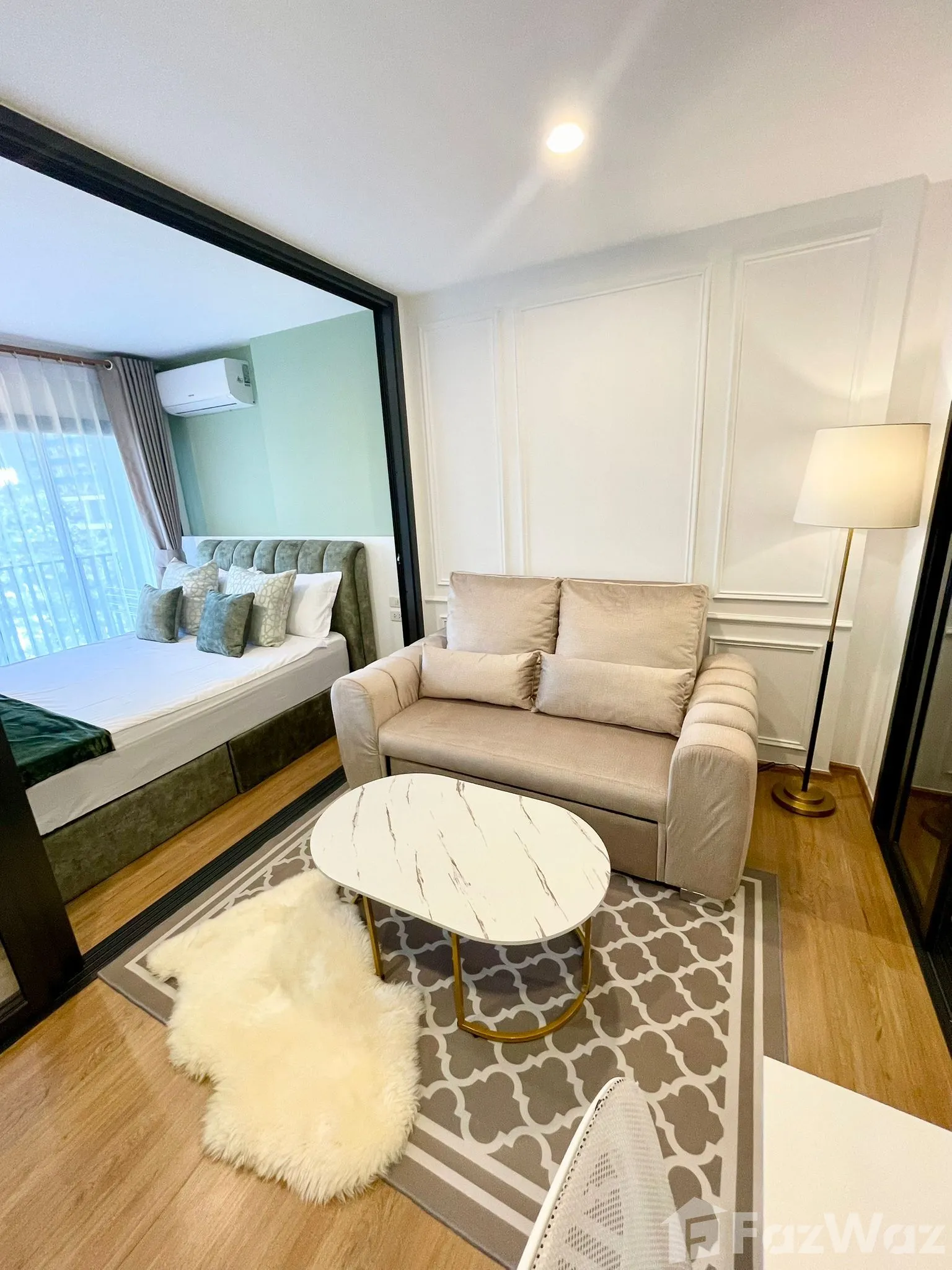 เป็นยูนิตที่ขายพร้อมกับเฟอร์นิเจอร์ครบชุด ที่เรียกได้ว่าเพียงแค่ยกกระเป๋าเสื้อผ้าเข้าไปก็สามารถอยู่อาศัยได้ทันที โดยมักจะมีเฟอร์นิเจอร์ตั้งแต่โซฟา ชั้นวางทีวี ในห้องรับแขก หรืออุปกรณ์เครื่องครัวทั้งหมด รวมไปถึงโต๊ะอาหาร ไล่เรียงไปยังเตียงนอนและตู้เสื้อผ้า ในห้องนอน (รายละเอียดปลีกย่อยอื่นๆ ขึ้นอยู่กับแต่ละยูนิต)