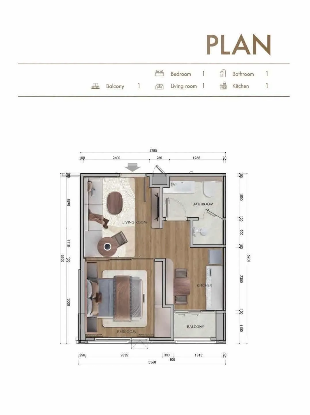 ห้องนอน 1 ห้องนอน