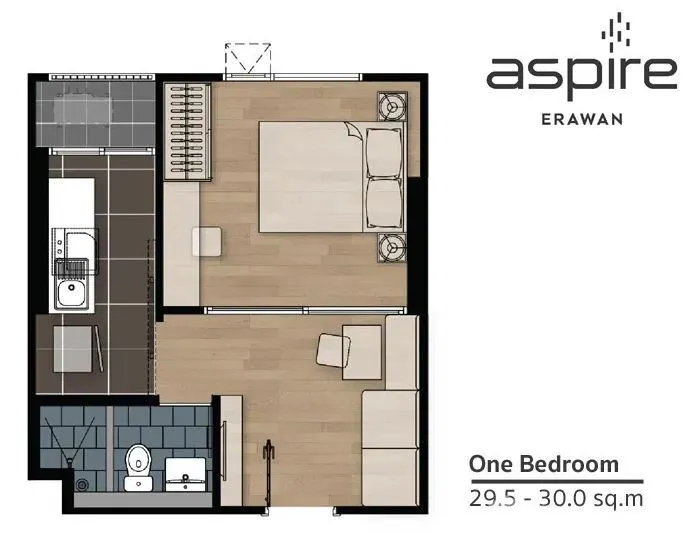 ห้องใหม่!! Aspire แอสปาย เอราวัณ 1 ห้องนอน 30 ตรม พร้อมเฟอร์+เครื่องใช้ไฟฟ้า ชั้น 27