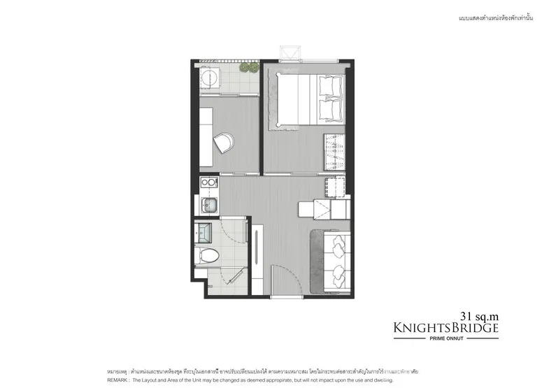 คอนโด 1 ห้องนอน 1 ห้องน้ำ พร้อมห้องทำงานแยกและห้องนั่งเล่น ที่ KnightsBridge Prime On Nut พื้นที่ใช้สอย 31.24 ตร.ม. ออกแบบลงตัว ใช้งานได้จริง พร้อม วิวเปิดโล่งไม่บล็อก ทั้ง วิวเมือง วิวคลอง/แม่น้ำ และวิวสกายไลน์