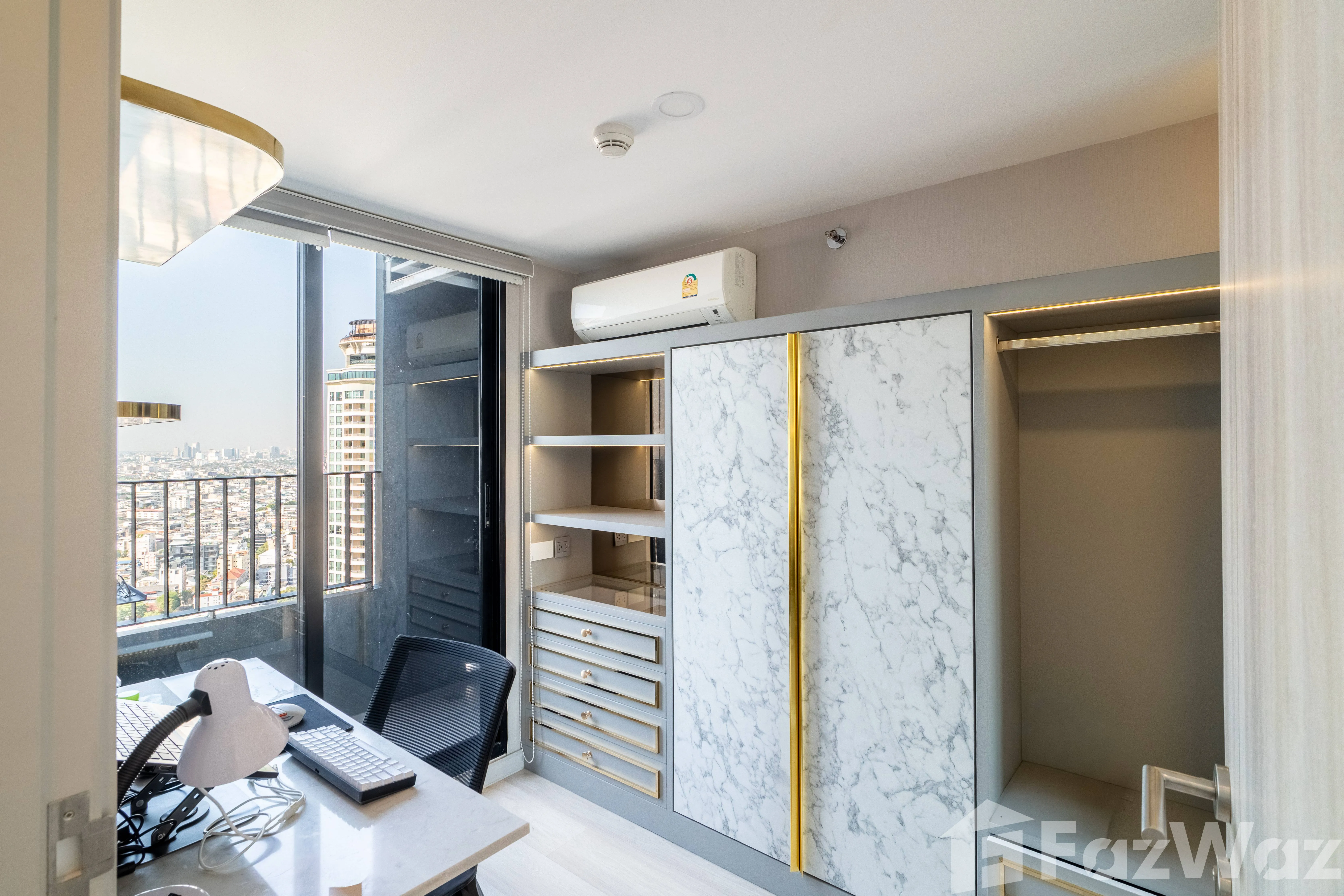 ยกระดับไลฟ์สไตล์ของคุณด้วยดูเพล็กซ์แบบ 1 ห้องนอนสุดหรู ตั้งอยู่บนชั้นที่ 32 ของโครงการ Knightsbridge Prime Sathorn หนึ่งในคอนโดมิเนียมไฮไรส์ที่โดดเด่นที่สุดใจกลางเมือง