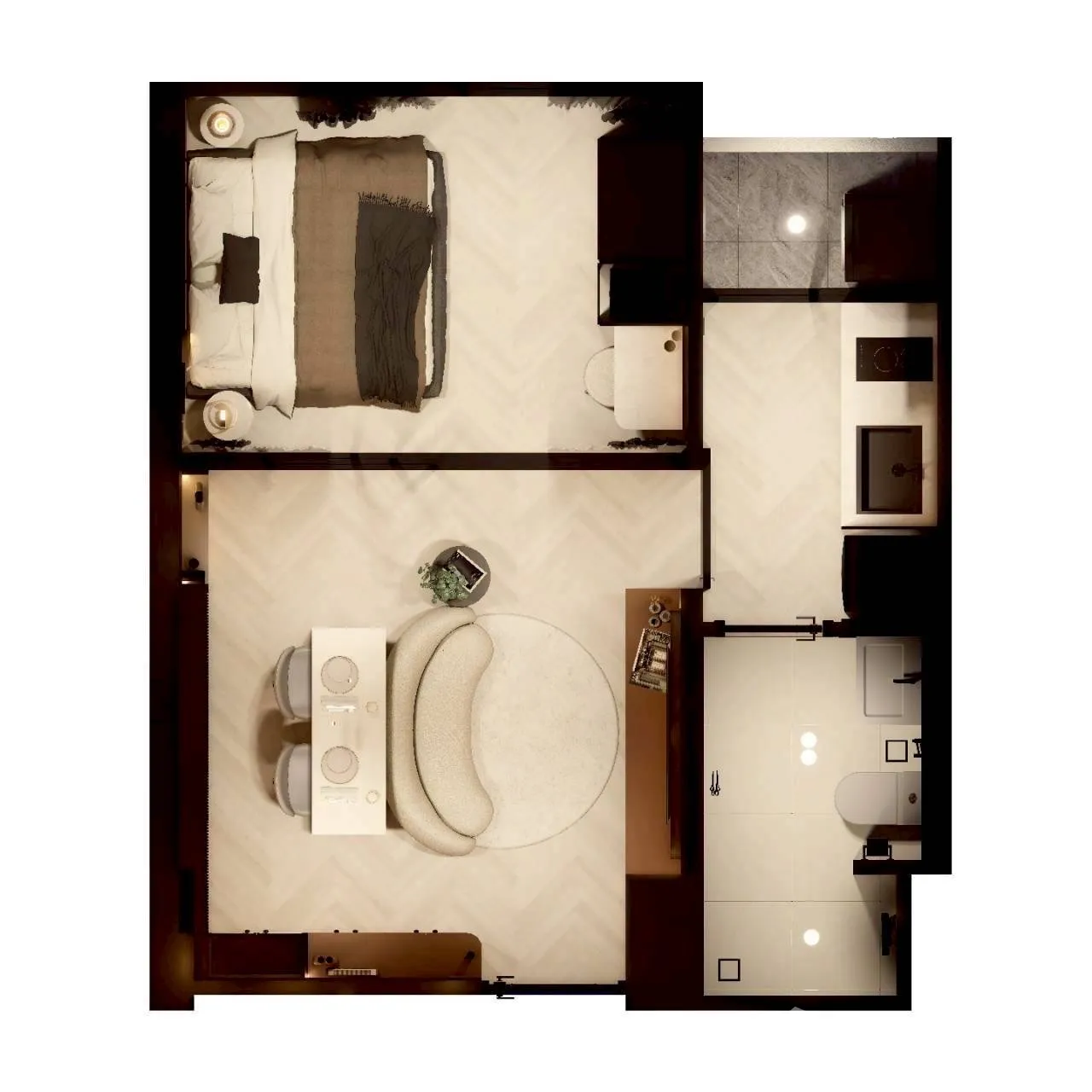เป็นยูนิตที่ขายพร้อมกับเฟอร์นิเจอร์ครบชุด ที่เรียกได้ว่าเพียงแค่ยกกระเป๋าเสื้อผ้าเข้าไปก็สามารถอยู่อาศัยได้ทันที โดยมักจะมีเฟอร์นิเจอร์ตั้งแต่โซฟา ชั้นวางทีวี ในห้องรับแขก หรืออุปกรณ์เครื่องครัวทั้งหมด รวมไปถึงโต๊ะอาหาร ไล่เรียงไปยังเตียงนอนและตู้เสื้อผ้า ในห้องนอน (รายละเอียดปลีกย่อยอื่นๆ ขึ้นอยู่กับแต่ละยูนิต)