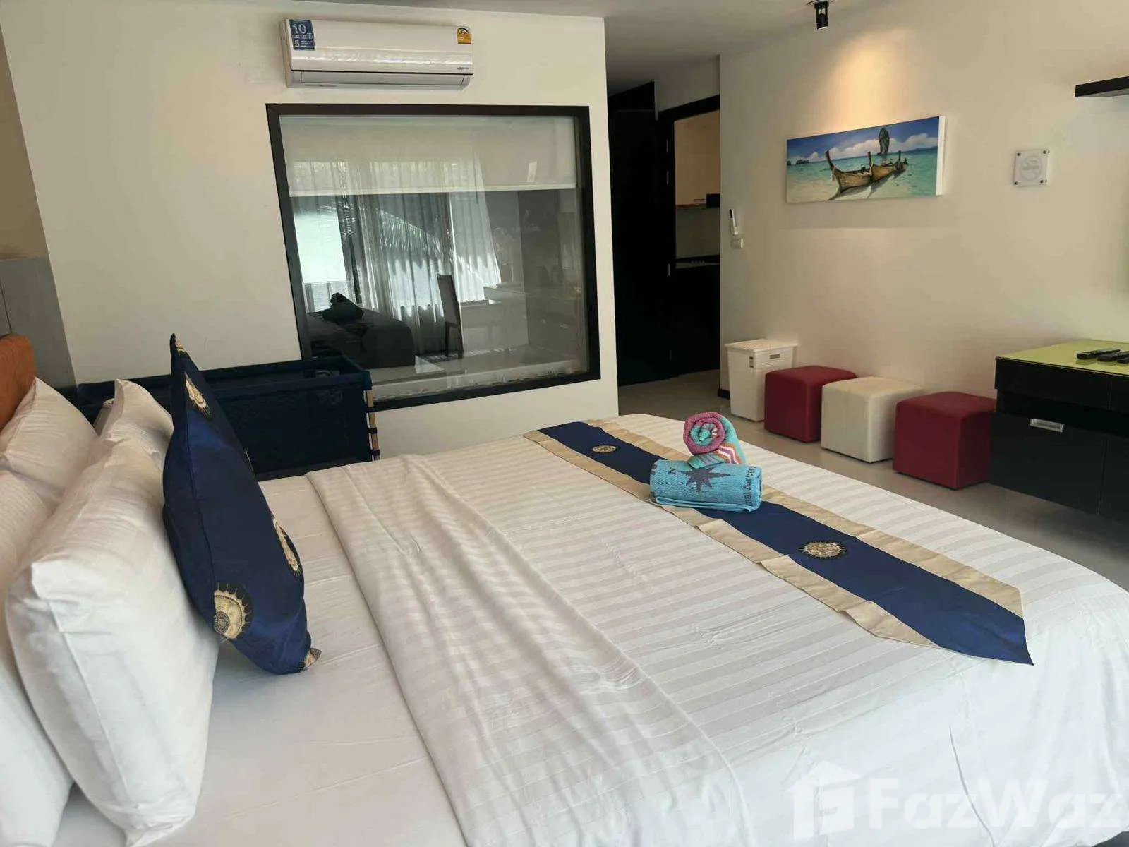 คอมเพล็กซ์มีสระว่ายน้ำและห้องออกกำลังกายที่ดีและใช้เวลาเดินประมาณ 10 นาทีจากชายหาดในกมลา