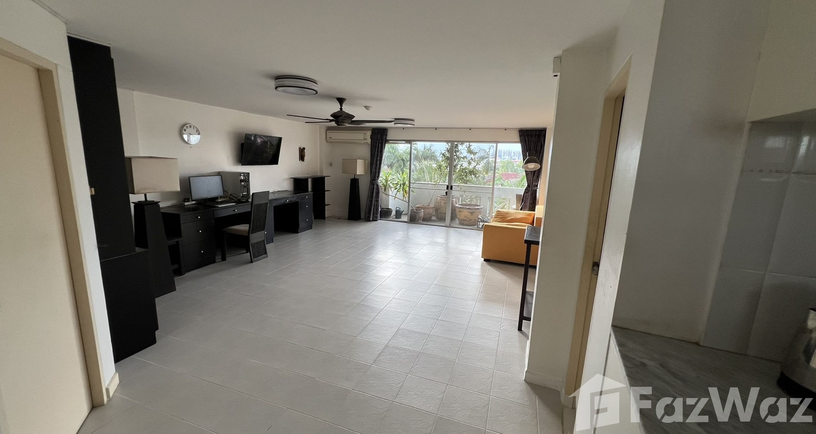 พร้อมประตูบานเลื่อนกระจก เปิดออกสู่ระเบียงที่มีหลังคา