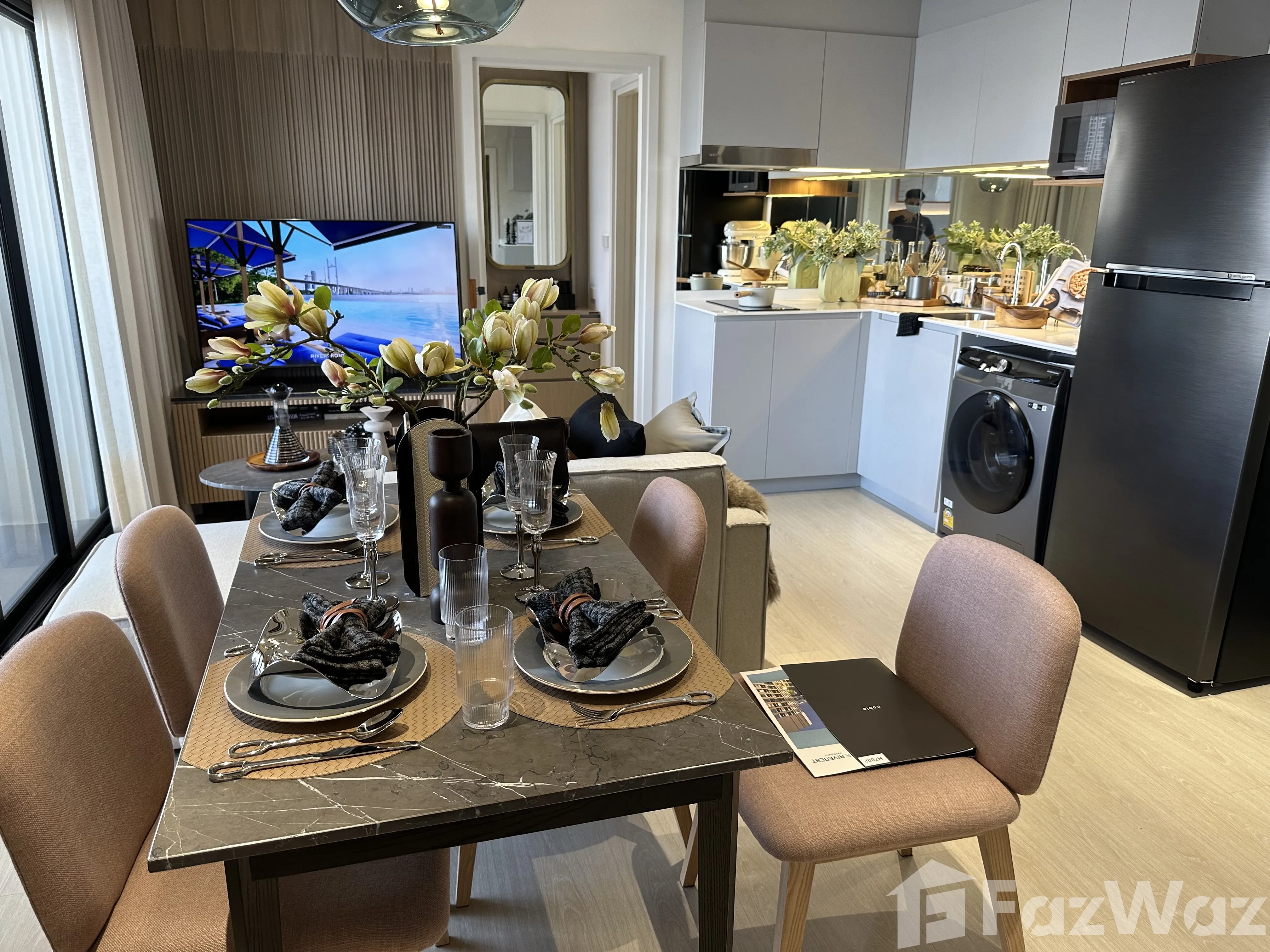 นิวริเวอร์เรสต์ โดย Noble ชั้น 7 ตำแหน่งหน้าแม่น้ำ ไม่สูงไม่เตี้ยจนเกินไป สัมผัสบรรยากาศแม่น้ำอย่างเต็มอิ่ม ห้องประเภทสองห้องนอน สองห้องน้ำ fully furnished ขนาด 50.25 ตรม