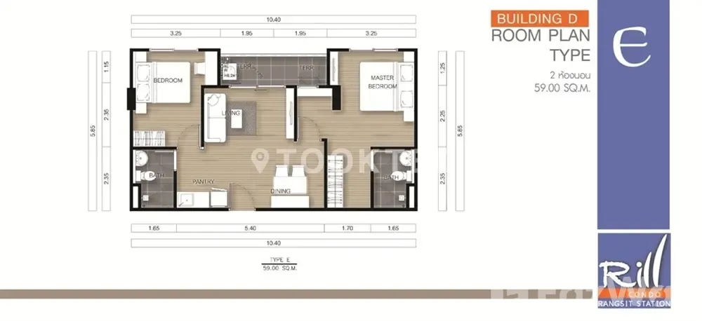 • 2 ห้องนอน 2 ห้องน้ำ 1 ห้องนั่งเล่น
