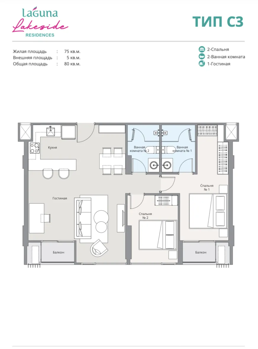 ขาย คอนโด 2 ห้องนอน ในโครงการ Laguna Lakeside (ลากูน่า เลคไซด์)