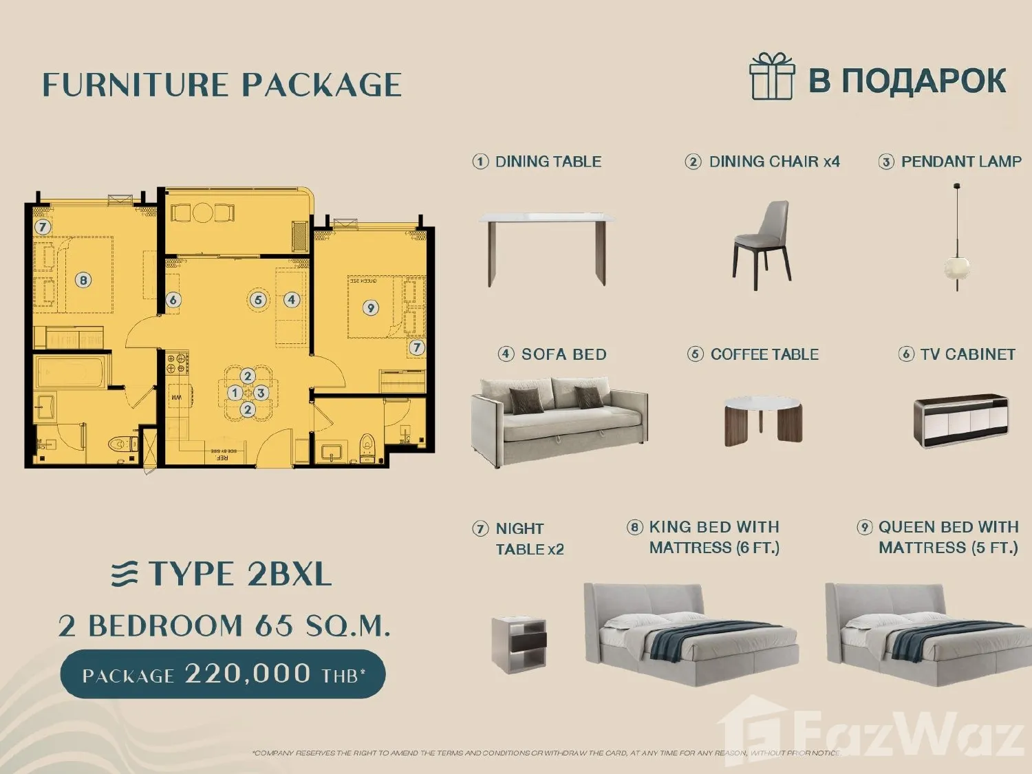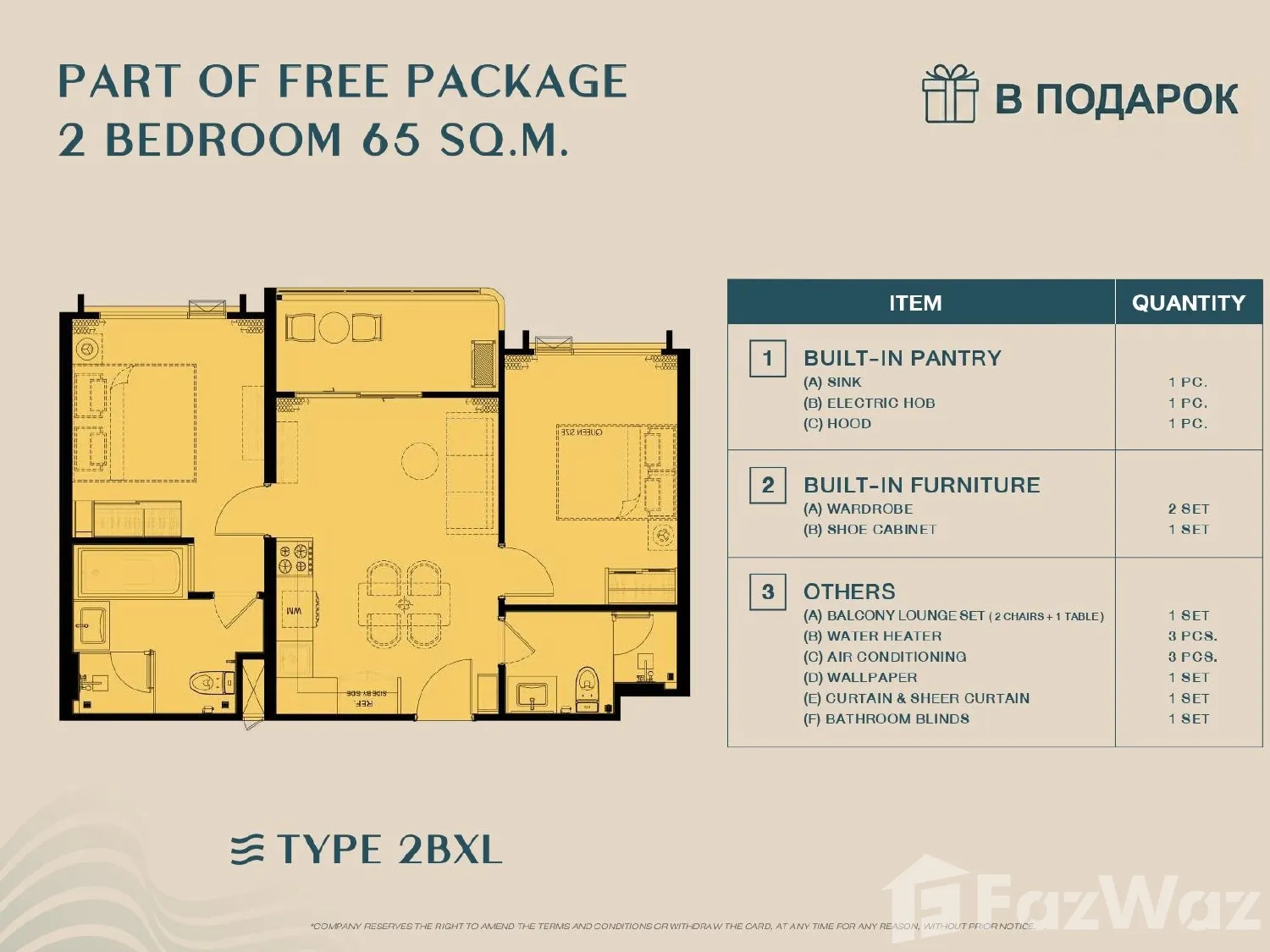 เป็นยูนิตที่ขายพร้อมกับเฟอร์นิเจอร์ครบชุด ที่เรียกได้ว่าเพียงแค่ยกกระเป๋าเสื้อผ้าเข้าไปก็สามารถอยู่อาศัยได้ทันที โดยมักจะมีเฟอร์นิเจอร์ตั้งแต่โซฟา ชั้นวางทีวี ในห้องรับแขก หรืออุปกรณ์เครื่องครัวทั้งหมด รวมไปถึงโต๊ะอาหาร ไล่เรียงไปยังเตียงนอนและตู้เสื้อผ้า ในห้องนอน (รายละเอียดปลีกย่อยอื่นๆ ขึ้นอยู่กับแต่ละยูนิต)