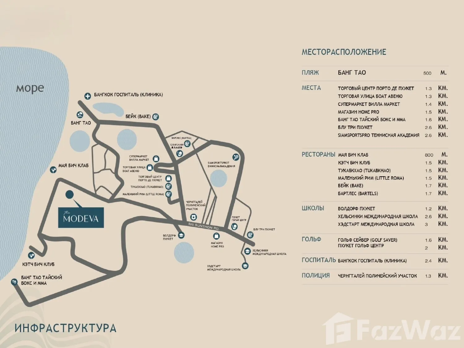 หาดบางเทา เป็นชายหาดที่ใกล้ที่สุด โดยห่างจากโครงการ เดอะ โมเดวา ไปประมาณ 0.9 กม.