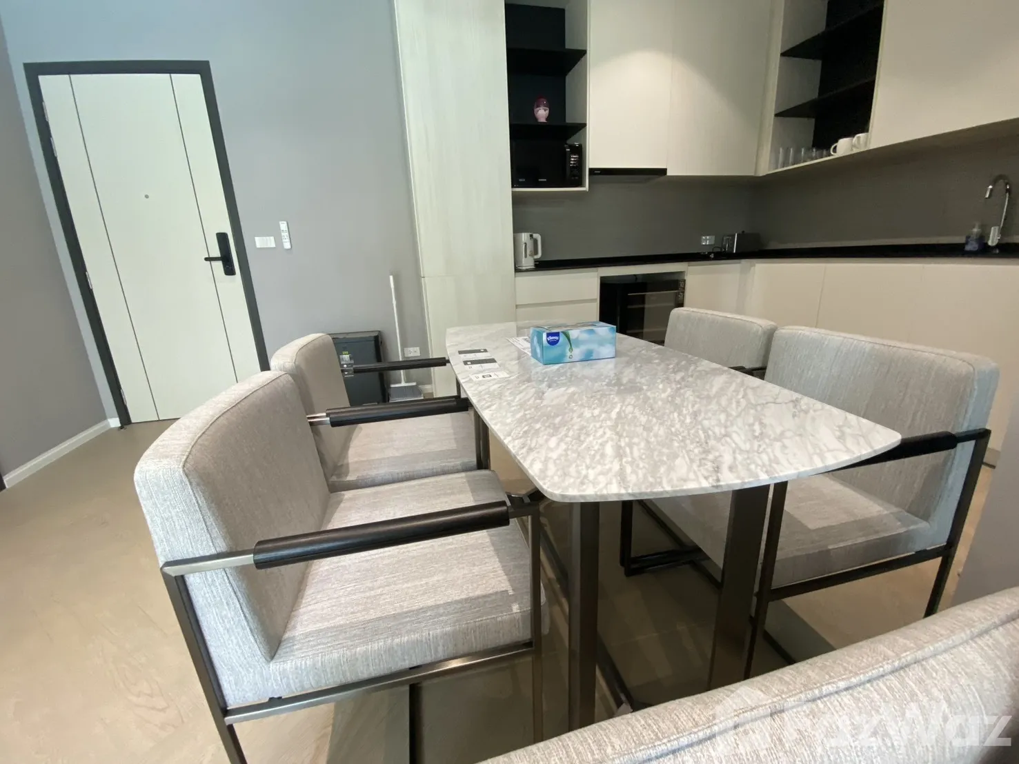 เป็นยูนิตที่ขายพร้อมกับเฟอร์นิเจอร์ครบชุด ที่เรียกได้ว่าเพียงแค่ยกกระเป๋าเสื้อผ้าเข้าไปก็สามารถอยู่อาศัยได้ทันที โดยมักจะมีเฟอร์นิเจอร์ตั้งแต่โซฟา ชั้นวางทีวี ในห้องรับแขก หรืออุปกรณ์เครื่องครัวทั้งหมด รวมไปถึงโต๊ะอาหาร ไล่เรียงไปยังเตียงนอนและตู้เสื้อผ้า ในห้องนอน (รายละเอียดปลีกย่อยอื่นๆ ขึ้นอยู่กับแต่ละยูนิต)