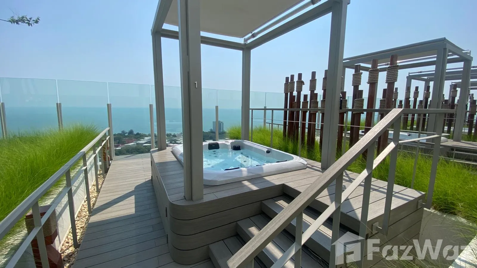 เข้าถึงสระส่วนกลางได้เข้าถึงสระส่วนกลางได้ ดาดฟ้าดาดฟ้า ชานบ้านชานบ้าน ที่จอดรถที่จอดรถ ระเบียงระเบียง