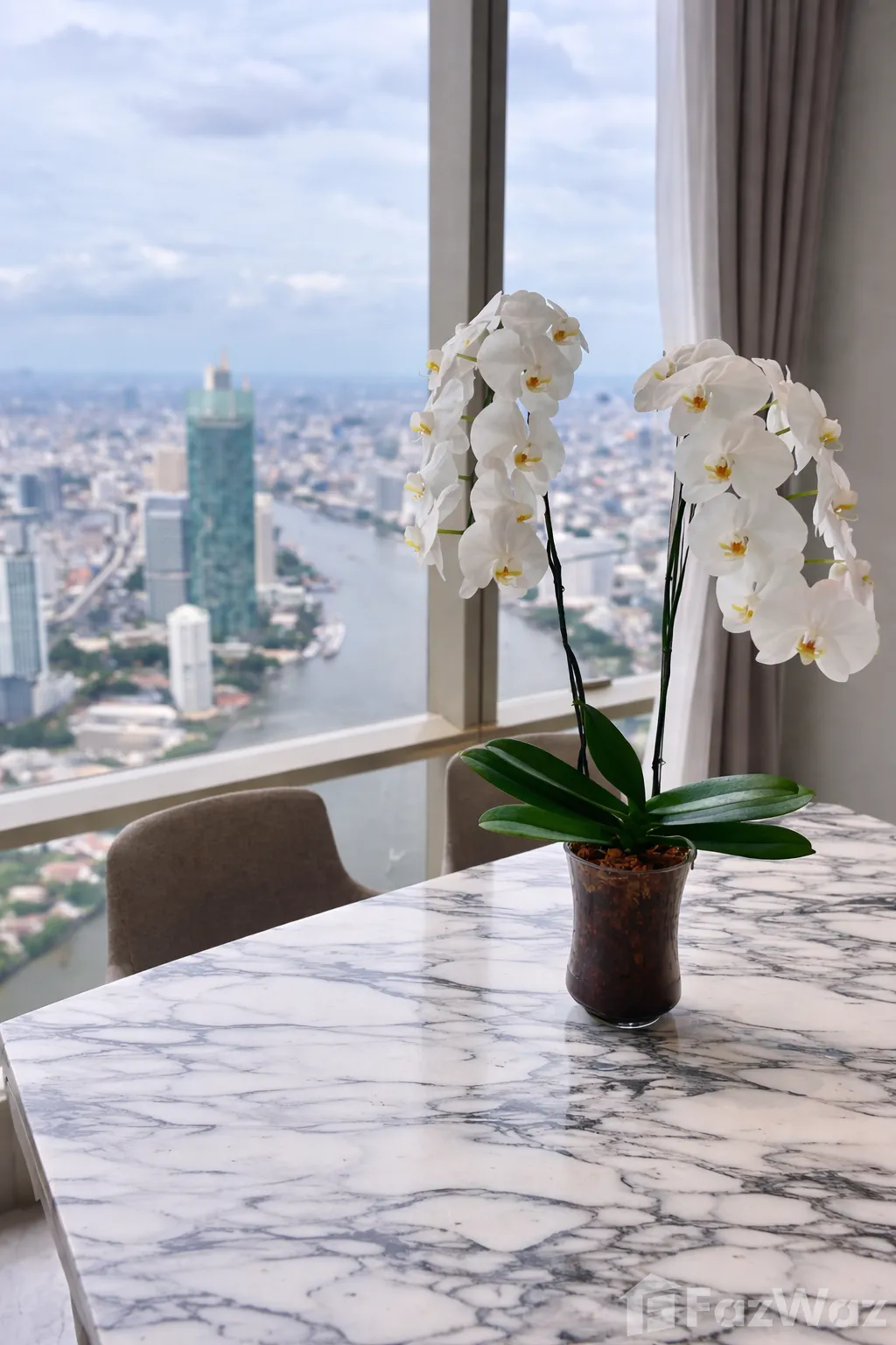 ตึกสูงโดดเด่นเห็นแต่ไกลเลยค่ะ บรรยากาศยอดเยี่ยมติดริมแม่น้ำเจ้าพระยา ห้องที่ได้เข้าไปดูจริง ๆ ก็มี 1-2 ห้องนอนค่ะ เห็นแล้วชอบมาก ๆ เลย แบบภายในพื้นที่ใช้สอยเยอะมาก แล้วเฟอร์นิเจอร์ที่ตกแต่งหรูหราแบบสุด ๆ เลยค่ะ วิวจากทุกห้องมองเห็นเมืองกรุงเทพได้ทั่วเลยนะคะ ส่วนสิ่งอำนวยความสะดวกของที่นี่ก็หรูหราเกินคำบรรยายค่ะ มีทั้งเลาจน์ คลับ และการบริการที่ยอดเยี่ยม