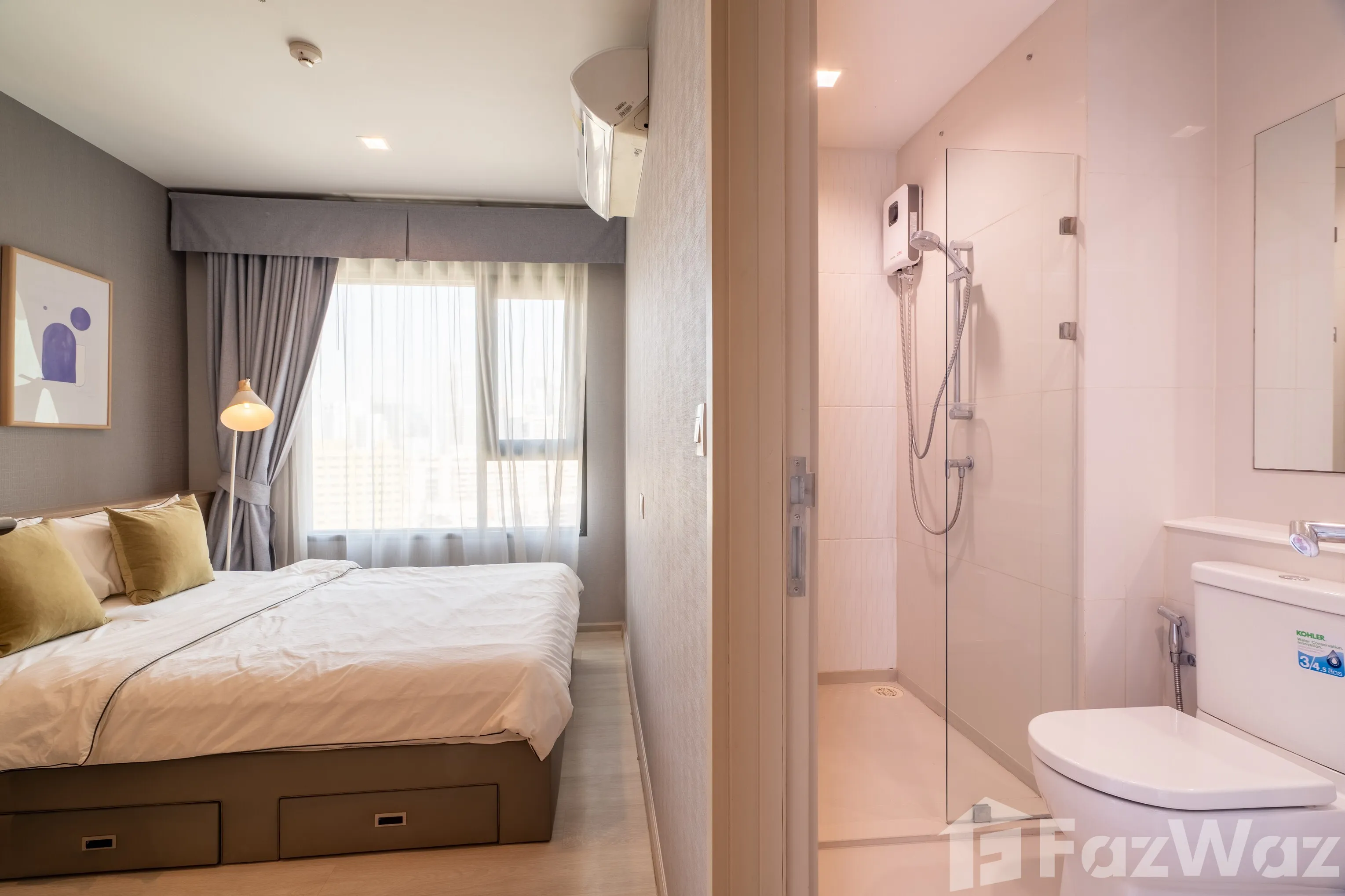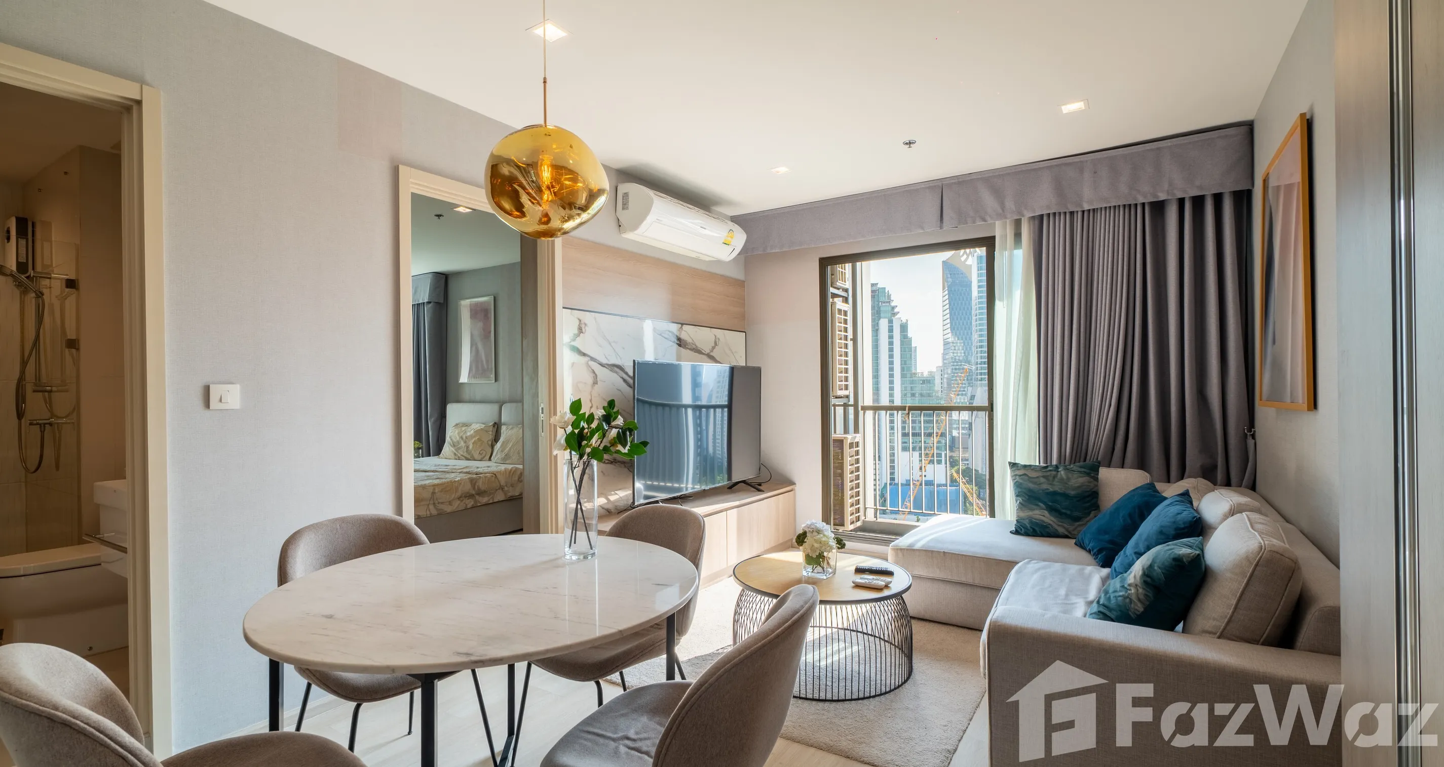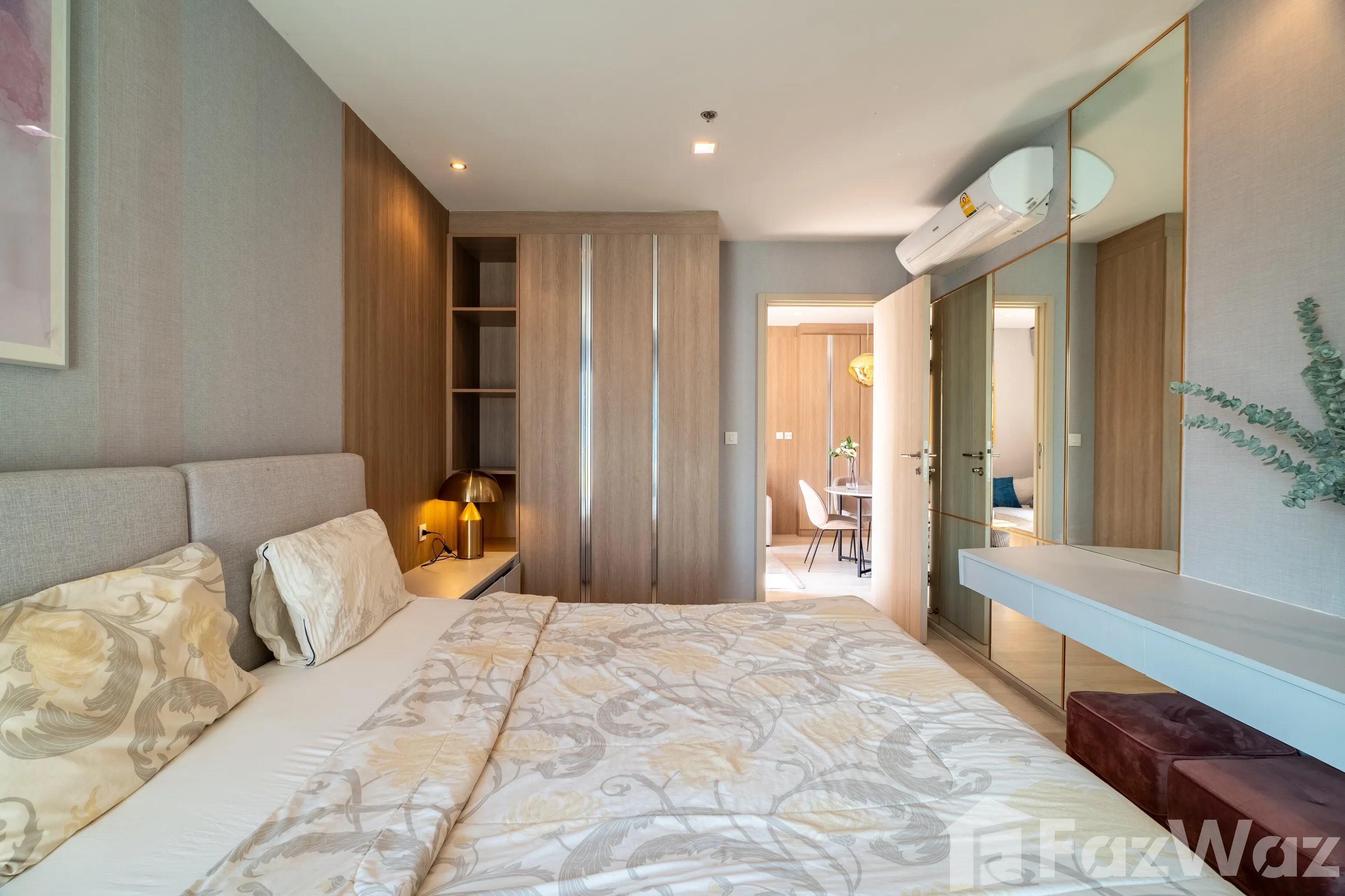 ห้องตั้งอยู่บน ชั้น 22 ขนาด 63 ตร.ม. แบ่งสัดส่วนลงตัว 2 ห้องนอน 2 ห้องน้ำ โดยห้องน้ำแขกสามารถใช้งานเป็น ห้องน้ำในตัวของห้องนอนรอง ได้อย่างยืดหยุ่น