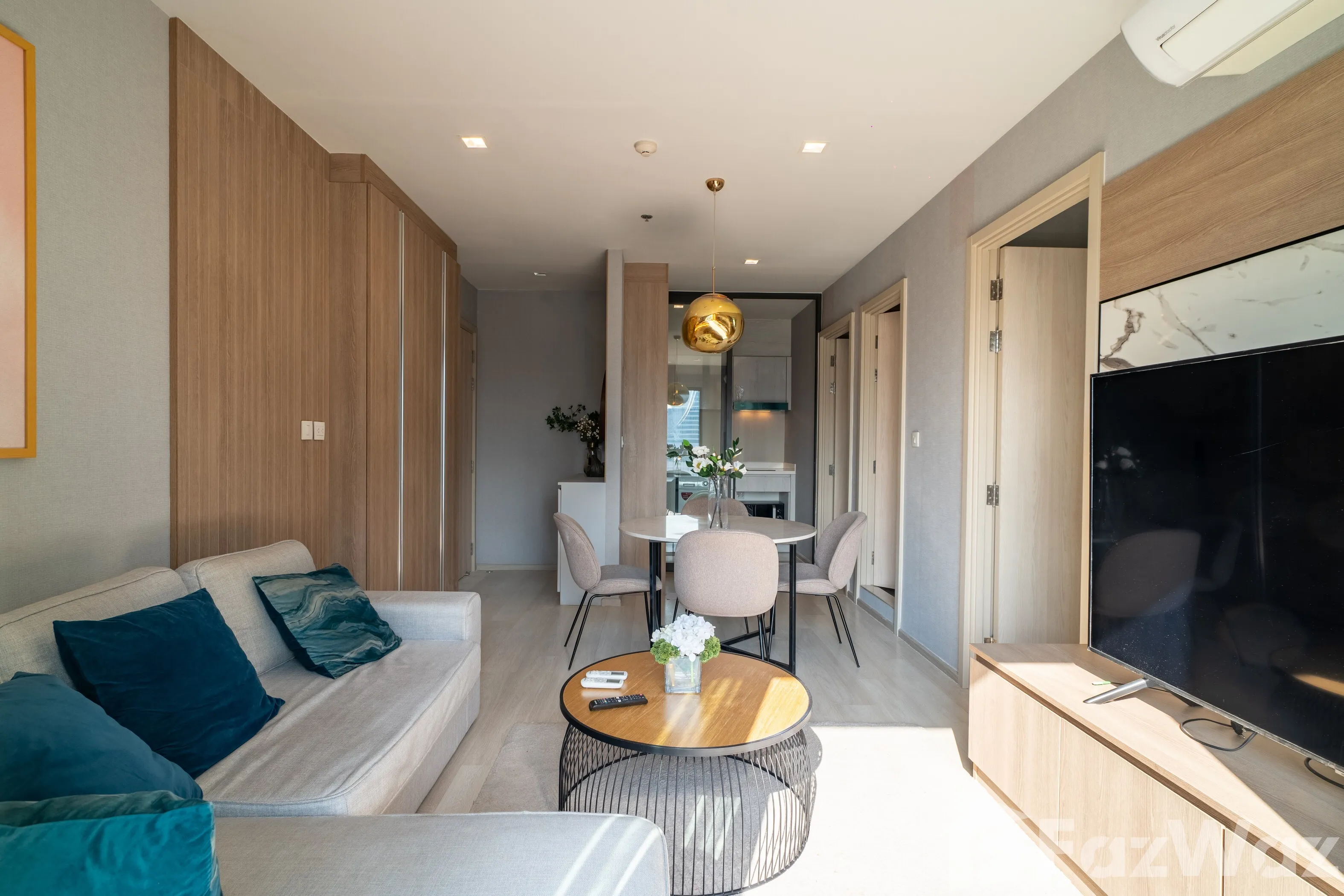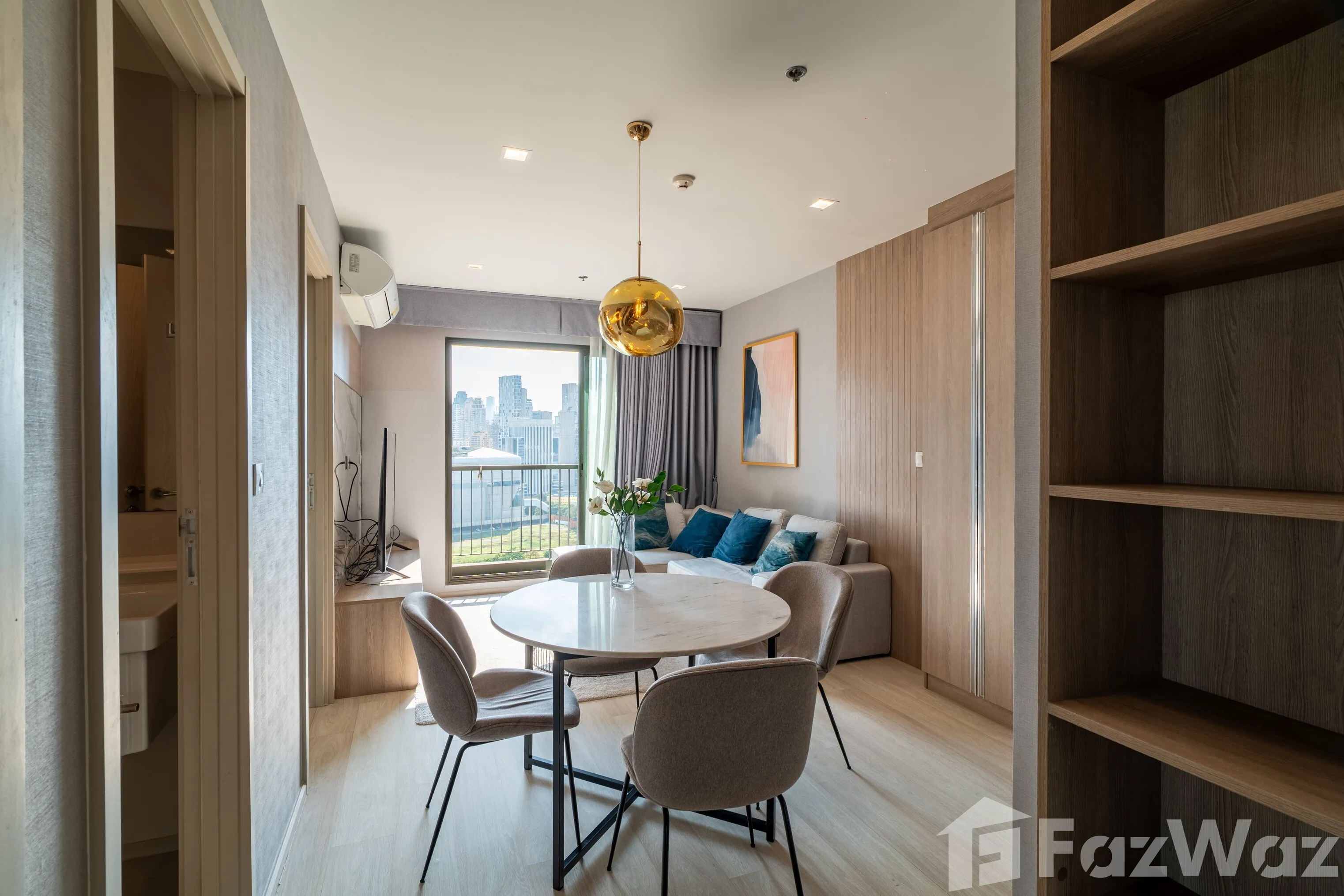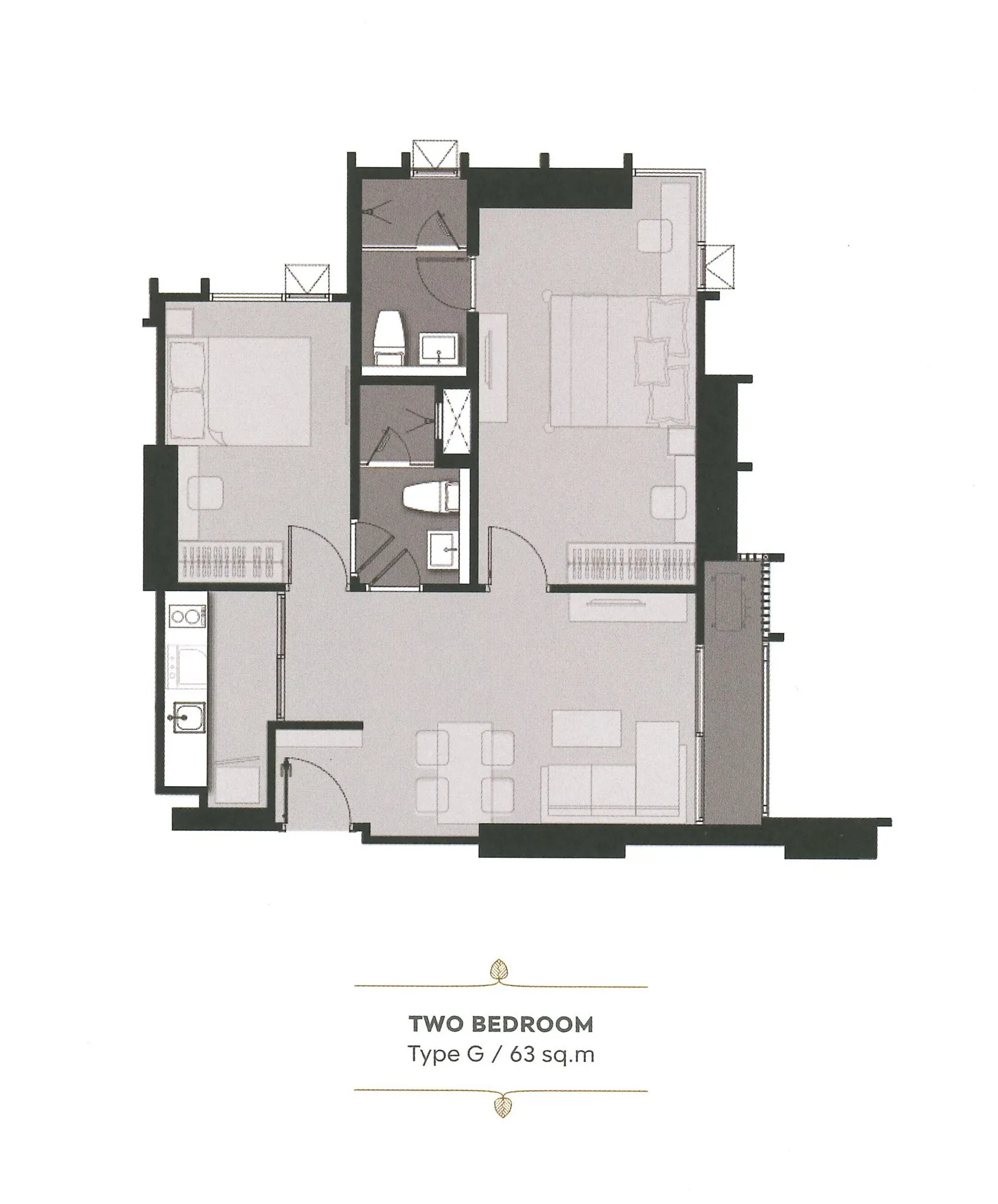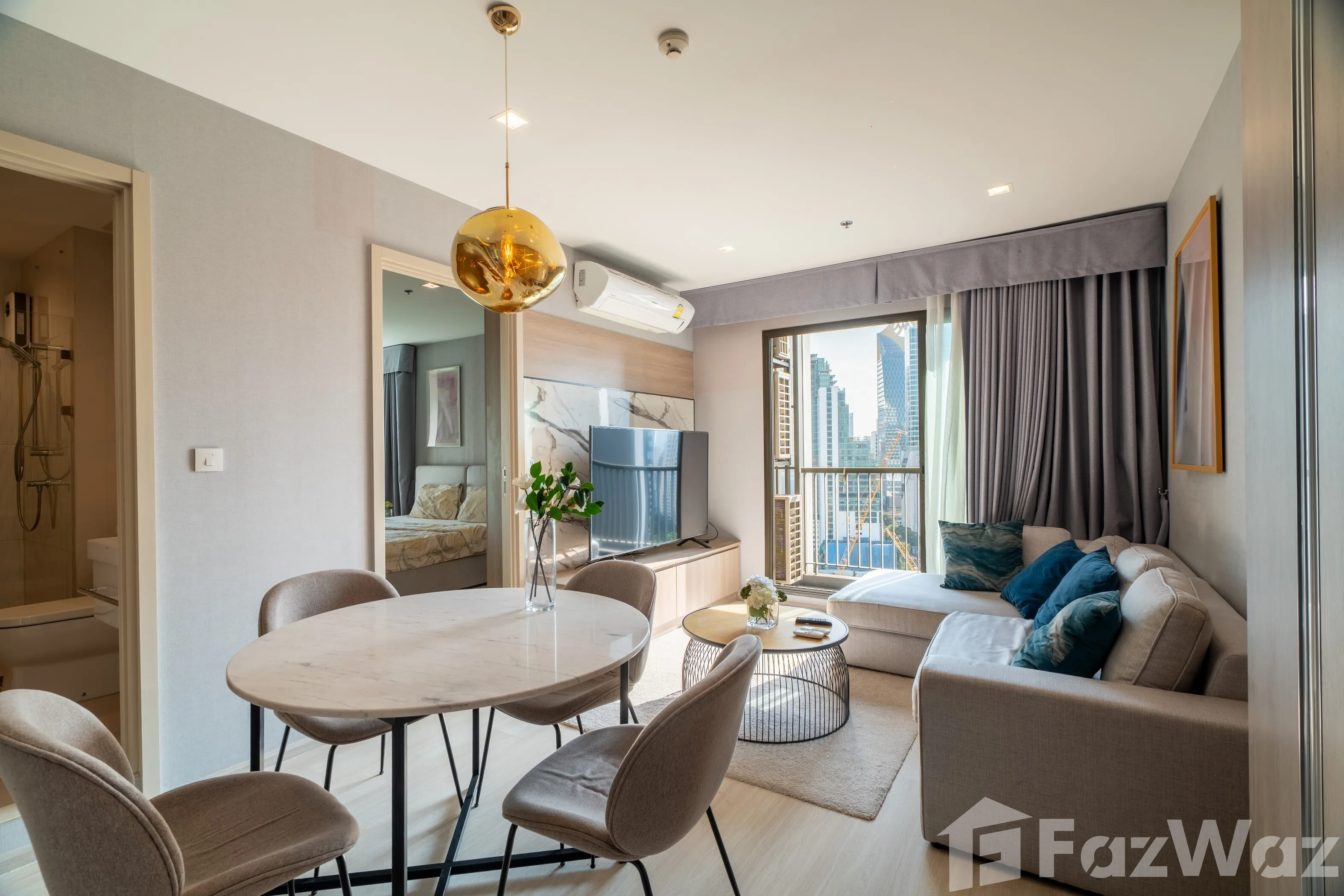 ห้องตั้งอยู่บน ชั้น 22 ขนาด 63 ตร.ม. แบ่งสัดส่วนลงตัว 2 ห้องนอน 2 ห้องน้ำ โดยห้องน้ำแขกสามารถใช้งานเป็น ห้องน้ำในตัวของห้องนอนรอง ได้อย่างยืดหยุ่น
