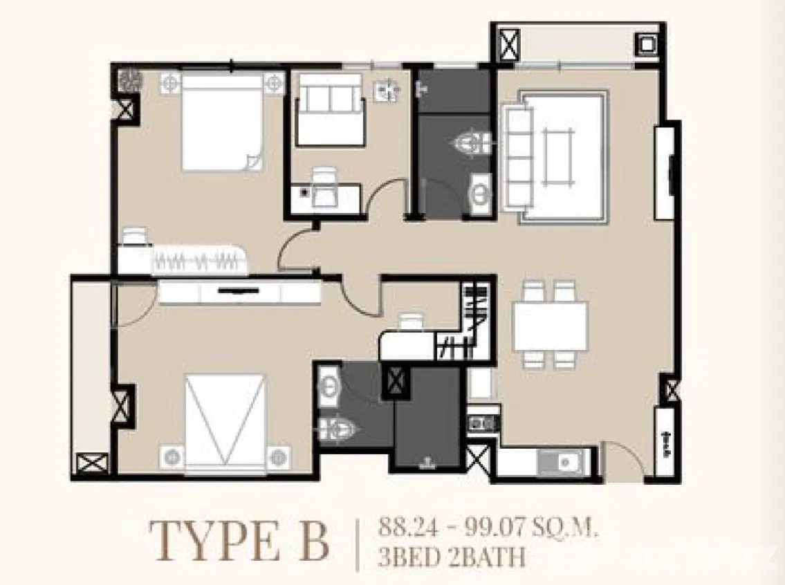ขนาด 88.59 ตรม. ขนาด