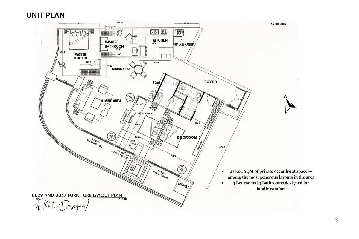 Elevate your lifestyle to new heights!   Live at the Cove, where luxury, central location, and serenity seamlessly blend.   We are delighted to present a stunning 3-bedroom luxury condominium for sale in the sought-after location of Pattaya's Wongamat Beach.   Situated between two prestigious five-star hotels, the Grand Centara Hotel on the north and Cape Dara Hotel on the south, Cove is an 18-floor oceanfront property that offers breathtaking views and unrivaled privacy. Adding to its allure, a new 5-star Grand Wyndham Resort is planned behind Cove.   Despite its secluded location accessible via a private road approximately 300m from the nearest public highway, Cove provides easy access to all conveniences. Whether you prefer a short walk or a drive, you will be surrounded by vibrant attractions such as Terminal 21, Central Festival Shopping Center, restaurants, and entertainment venues.   Wongamat/Naklua is rapidly developing with several large-scale projects underway. This further enhances its reputation as Pattaya's premier neighborhood.   Building Description:   Renowned as the top luxury building in Pattaya, Cove stands out with its unique architectural design that sets it apart from other projects in the area. With only 100 apartments spread across 17 floors within a spacious and airy lobby spanning over twelve floors, Cove sets unprecedented standards of grandeur.   Occupying approximately 10,000 sqm of land along a picturesque stretch of coastline spanning about 60m with direct beach access and elevated levels ensuring complete privacy and security. The park-like environment surrounding the property features meticulously landscaped gardens.   Residents enjoy an array of world-class amenities including a snooker room, children's playroom, two squash courts, a library, a fitness room, a clubhouse, a jacuzzi, and a large swimming pool with separate areas for adults and children.   Unit description:   This exceptional unit is located on the south side of the building and offers stunning views of the ocean, Koh Lan Island, and beautiful sunsets. It has a spacious living/dining area with an open kitchen, three bedrooms with bathrooms, and a large balcony with a built-in jacuzzi. The total area of the apartment is 238 sqm.