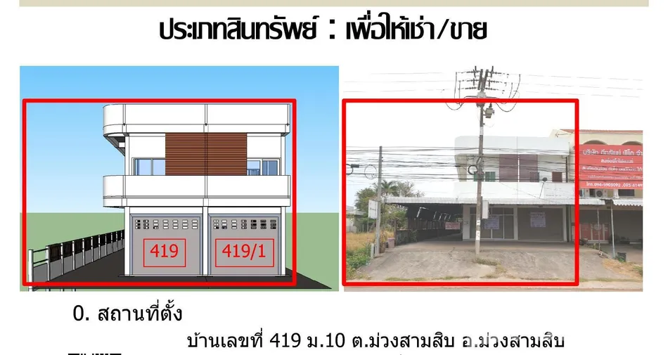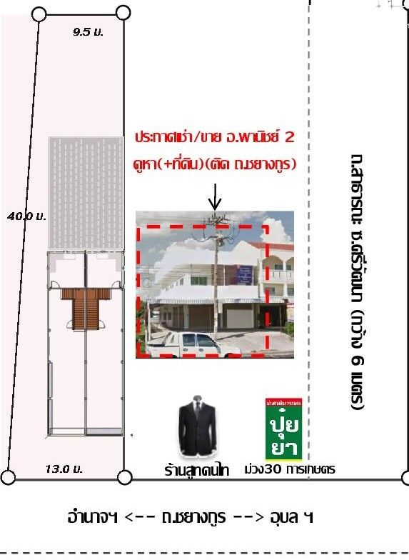 ขายอาคารพาญิชย์ติดถนนชยางกูร ใกล้ธนาคาร ธ.ก.ส.ม่วงสามสิบ จ.อุบล 2 คูหา และ ที่ดินทั้งหมด+พร้อมโซล่าเซลล์+โกดังหลังอาคาร(ปัจจุบันเงินเทอโบเช่าอยู่) - ราคาตั้ง 10.5 บาท ราต่อรองได้ x เจ้าของขายเอง*ขายพร้อมผู้เช่า(เก็บค่าเช่าต่อได้เลย) จุดขาย 1.*ทำเลทอง*สามารถทำเรื่องกู้ซื้อได้เย่อะ และ ได้ราคาประเมินดีเพราะติดถนนชยางกูร ถนนสายหลัก และ ใกล้ ธนาคาร ธ.ก.ส. ม่วงสามสิบ (ห่างแค่ 100 เมตร) 2.*ขายพร้อมรายได้เฉลี่ยเดือนละ 7,350 บาท/เดือน* จากสัญญาขายไฟฟ้าโซล่าเซลล์ให้ กฟภ.(ขายพร้อมโอนสัญญา) 3.*ที่เหมาะค้าขาย*ซื้อแล้วทำค้าขายได้เลย เช่น ขายปุ๋ย, อาหารสัตว์, ของร้าน 20 บาท ฯลฯ คนผ่านเย่อะ ทุกตำบลในอำเภอม่วงสามสิบ มา ธ.ก.ส. ทุก เดือนละๆ หลายครั้ง 4. *มีพื้นที่โกดังด้านหลังและทางเข้าด้านข้าง* ตอนนี้มีพื้นที่หลังคาโกดังด้านหลัง 90 ตารางเมตร (9ม.x10ม.) +และยังมุงเพิ่มได้อีก 90 ตร.ม รวมเป็น 180 ตร.ม. 5.*ถนนหน้าที่ดินคอนกรีต* ถนนทางเข้าเป็นถนนคอนกรีตโดยทางเทศบาลแล้ว 6.*ร้านใกล้เคียง* ธกส.ม่วงฯ, ดีทรัพย์ พิโก, สูทคนไท, ม่วงสามสิบการเกษตร, ป้ายเกษตรศิลป์, กาแฟทัศนา ฯ ราคาขาย '- ราคาตั้ง 10.5 บาท - ค่าโอนและธุรกรรมทั้งหมด จ่ายคนละครึ่ง - ราต่อรองได้ x เจ้าของขายเอง ข้อมูลที่ดิน - อยู่ในเขตเทศบาลตำบลม่วงสามสิบ - ใกล้และอยู่ฝั่งเดียวกันกับใกล้ธนาคาร ธกส.ม่วงสามสิบ - พิกัด ละติจูด 15.306235 และ ลองติจูด 104.834821 - สภาพที่ดิน ปลูกสร้างอาคารพาณิชย์และเทพื้นคอนกรีตทั้งหมด ลักษณะสิ่งปลูกสร้าง - อาคารพาณิชย์ 2 ชั้น x จำนวน 2 คูหา สีาขาว ติดถนนชยางกูร - อาคารพาณิชย์ แต่ละคูหา หน้ากว้าง 4 เมตร  - คูหาแรกมี 2 ห้องนอน 2 ห้องน้ำ 1 ห้องครัว, คูหาที่สองมี 1 ห้องนอน 2 ห้องน้ำ 1 ห้องครัว - พื้นที่ขายของจะแยกเป็นห้องใครห้องมัน *สามารถทุบผนังทะลุห้องเป็นห้องใหญ่ได้ หมายเหตุ '- **ขออนุญาต ไม่ให้ต่อรองราคาแบบน่าเกลียดนะครับ แบบว่าซื้อไปเก็งกำไรขายต่อ ติดต่อ King 085-505-5659 Line ID: king_buddy