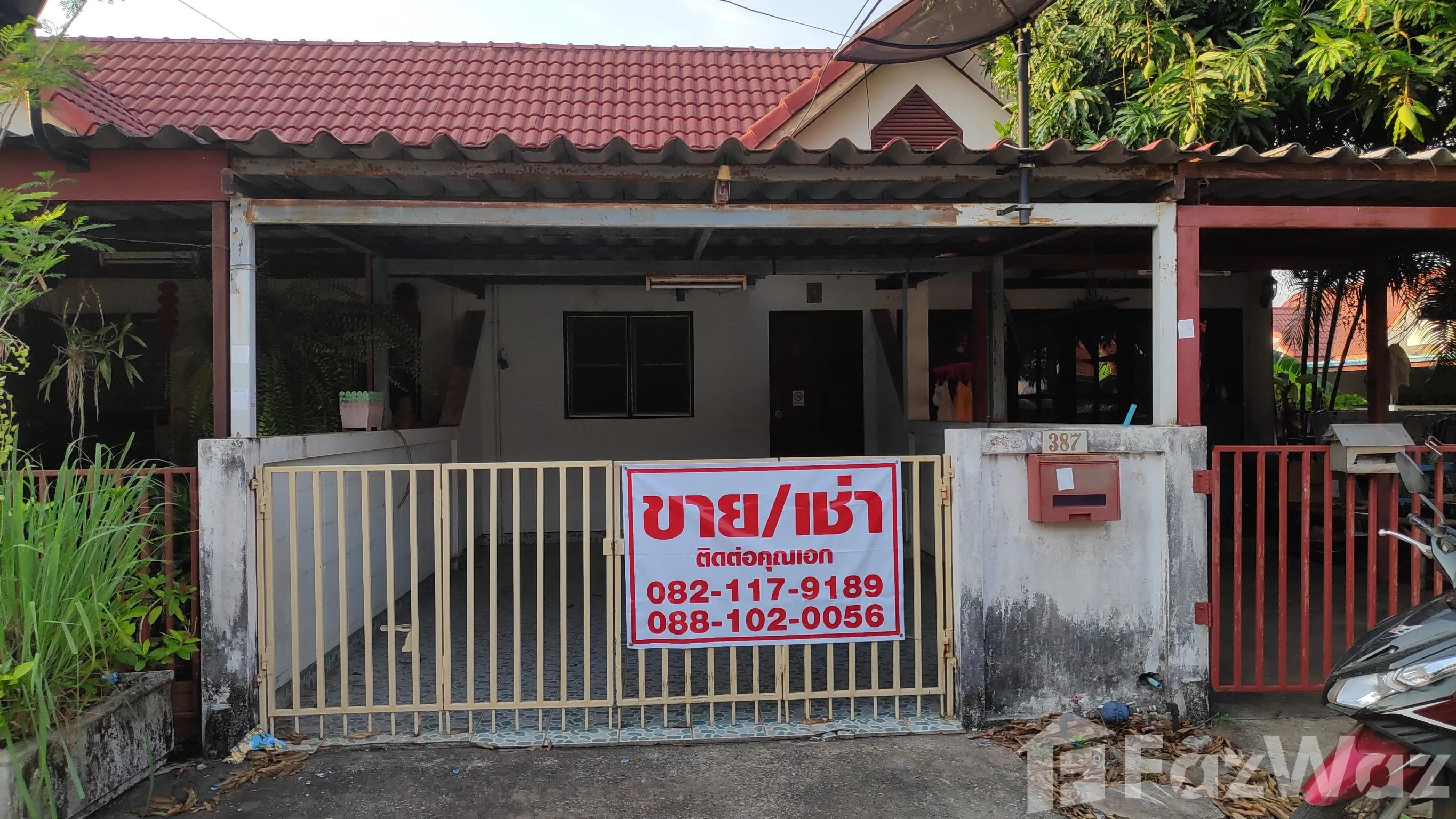 หน้าบ้านมีที่จอดรถในร่ม รั้วรอบขอบชิด