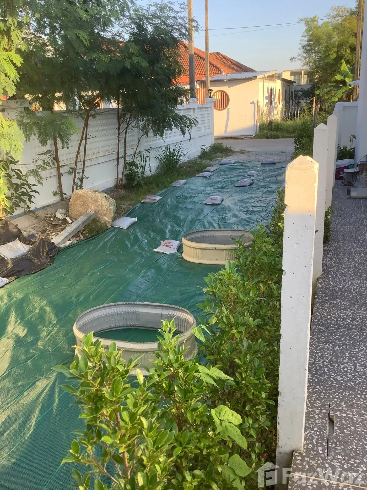 เป็นการรวมขนาดของพื้นที่ก่อสร้างภายนอก เช่น สระว่ายน้ำ, ชานบ้าน, ที่จอดรถ และ ศาลา แต่จะไม่รวมพื้นที่สวนเข้าไปด้วย