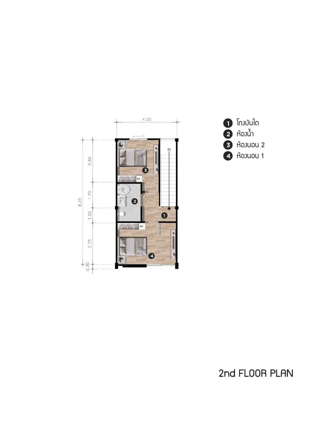 - 2 ห้องนอน 2 ห้องน้ำ 1 ห้องโถงรับแขก