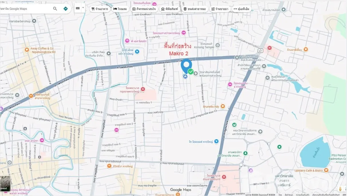 🏡 ประกาศ ขาย บ้านทำเลดี  เดินทางสะดวก เข้าออกหลายทาง ใกล้แหล่งชุมชนและสิ่งอำนวยความสะดวกครบครัน    📍 ข้อมูลที่ตั้งและรายละเอียดบ้าน ที่ตั้ง: บ้านเลขที่ 37 ซอย 4 ถนนบ้านกลางนา ตำบลหาดใหญ่ อำเภอหาดใหญ่ จังหวัดสงขลา   พิกัด Google Map: /div>   ขนาดพื้นที่: 15.5 ตารางวา บ้านชั้นครึ่ง   ฟังก์ชันบ้าน: 2 ห้องนอน / 2 ห้องน้ำ / 1 ห้องครัว / จอดรถยนต์ได้ 1 คัน /จอดรถจักรยานยนต์ได้ 2 คัน มีพื้นที่เดิน   จุดเด่นของบ้าน: บ้านห้องริมสุดโครงการ ใช้กำแพงร่วมฝั่งเดียว  ถนนจอดรถได้ สามารถออกมาเล่นกิจกรรมหน้าบ้านได้ รถผ่านมีแค่คนในซอยหมูบ้าน ไฟแสงสว่างทั้งซอย ปลอดภัย และสภาพแวดล้อมดีเยี่ยม   🚗 เส้นทางการเข้า-ออก และการเดินทาง เดินทางสะดวกสบาย ซอย 4 ถนนบ้านกลางนา เข้าออกง่าย ถนนกว้างขวาง    สามารถเชื่อมต่อถนนสายหลักได้รวดเร็ว เช่น ถนนเพชรเกษม / ถนนกาญจนวนิช / หรือเส้นทางลัดต่างๆ   🏫 สถานที่สำคัญใกล้เคียง (เดินทางสะดวก ตอบโจทย์ทุกไลฟ์สไตล์)   🛍️ แหล่งช้อปปิ้งและตลาด:    Makro 2 : กำลังก่อสร้างอยู่หน้าซอยทางเข้า ซอย 7 เพชรเกษม ห่างเพียง 500 เมตร (ขับรถหรือขี่มอเตอร์ไซค์แค่ 3 นาที)   บิ๊กซี เอ็กซ์ตร้า หาดใหญ่ 2: ใกล้มาก! ห่างเพียง 700 เมตร (ขับรถหรือขี่มอเตอร์ไซค์แค่ 3 นาที)   โฮมโปร หาดใหญ่ (สาขา ถ.เพชรเกษม): ห่างเพียง 1 กิโลเมตร (ขับรถประมาณ 5 นาที) จะซื้อของแต่งบ้านหรือซ่อมแซมอะไรก็สะดวก   โลตัส หาดใหญ่ (หน้า ม.อ.): ห่างประมาณ 2.0 กิโลเมตร (ขับรถประมาณ 6 นาที)   หาดใหญ่วินเทจ (Hatyai Village แหล่งรวมของกินและจุดถ่ายรูปชิคๆ): ห่างประมาณ 3.9 กิโลเมตร (ขับรถ 9 นาที)   ตลาดกิมหยง (แหล่งของฝากชื่อดัง): ห่างประมาณ 3.1 กิโลเมตร (ขับรถประมาณ 10 นาที)   ศูนย์การค้าไดอาน่าคอมเพล็กซ์: ห่างประมาณ 3.2 กิโลเมตร (ขับรถประมาณ 12 นาที)   ตลาดกรีนเวย์ (Greenway Night Market): ห่างประมาณ 3.6 กิโลเมตร (ขับรถประมาณ 11 นาที)   เซ็นทรัลเฟสติวัล หาดใหญ่: ห่างประมาณ 4.8 กิโลเมตร (ขับรถประมาณ 15 นาที)   แม็คโคร หาดใหญ่ (สาขา ถ.กาญจนวนิช): ห่างประมาณ 4.4 กิโลเมตร (ขับรถ 14 นาที) ตอบโจทย์การซื้อของเข้าบ้านแพ็คใหญ่ หรือสายทำอาหารชิลๆ   🏥 โรงพยาบาล:    โรงพยาบาลกรุงเทพหาดใหญ่: ห่างเพียง 1 กิโลเมตร (ขับรถประมาณ 4 นาที)   โรงพยาบาลสงขลานครินทร์ (ม.อ.): ห่างประมาณ 2.3 กิโลเมตร (ขับรถประมาณ 8 นาที)   โรงพยาบาลราษฎร์ยินดี: ห่างประมาณ 2.8 กิโลเมตร (ขับรถประมาณ 9 นาที)   โรงพยาบาลหาดใหญ่: ห่างประมาณ 3.2 กิโลเมตร (ขับรถประมาณ 11 นาที)   โรงพยาบาลศิครินทร์ หาดใหญ่: ห่างประมาณ 3.4 กิโลเมตร (ขับรถประมาณ 12 นาที)   🎓 สถานศึกษา: [เช่น มหาวิทยาลัยสงขลานครินทร์ (ม.อ.) / โรงเรียนหาดใหญ่วิทยาลัย]   🌳 สวนสาธารณะ สถานที่พักผ่อน และสถานที่สำคัญ (พื้นท