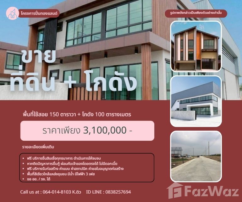 ที่ดินขายต่ำกว่าราคาธนาคารประเมิน    📍 ที่ตั้ง : หลังคลังเซเว่น บางบัวทอง นนทบุรี ทำเลดี อยู่ในแหล่งชุมชน 💸 ราคา : ที่ดิน+ โกดัง โรงงาน  3,100,000 บาท  ( ราคานี้จบค่ะ โอนฟรี ) 🏞️ ประเภท : ที่ดิน 150 ตารางวา สิ่งปลูกสร้าง 100 ตารางเมตร 💦 มีน้ำ มีไฟฟ้า 3 เฟส  พร้อมใช้งาน มีถนนคอนกรีตในโครงการ เรียบร้อย   ⭐️ ดาวน์น้อย ผ่อนนาน 10 ปี 📌 ทำสินเชื่อทุกธนาคาร ฟรี ❗️ กู้ไม่ผ่านคืนเงินจอง 100% ทันที ‼️  หรือ จะผ่อนกับเจ้าของโดยตรงก็ได้ค่ะ    ** ปล. รูปภาพโกดัง โรงงาน เป็นเพียงตัวอย่างเท่านั้น ***   สนใจต่อสอบถามเพิ่มเติมได้นะคะ 📞ติดต่อ : 064-0148103  k. ดิว  📲 ID: 0838257694   (สามารถเข้ามาดูที่ก่อนตัดสินใจได้ค่ะ)