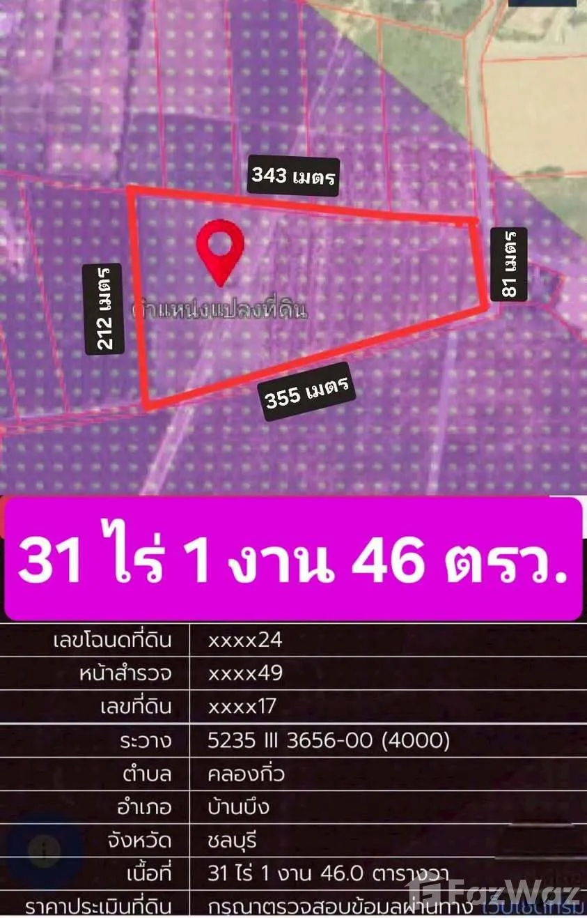 ขายที่ดิน ในทำเล บ้านบึง, พัทยา