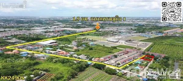 - ค่าพิกัดภูมิศาสตร์และการตีเส้นสีแดงในภาพข้างต้น เป็นเพียงการระบุตำแหน่งที่ตั้งและประมาณการพื้นที่เบื้องต้นของทรัพย์สินเบื้องต้นของบริษัทฯ เท่านั้น ซึ่งอาจมีการคลาดเคลื่อนจากสภาพความเป็นจริงได้ ผู้ซื้อต้องตรวจสอบสภาพสถานที่ตั้งทรัพย์สิน ด้วยตนเองก่อนซื้อ
