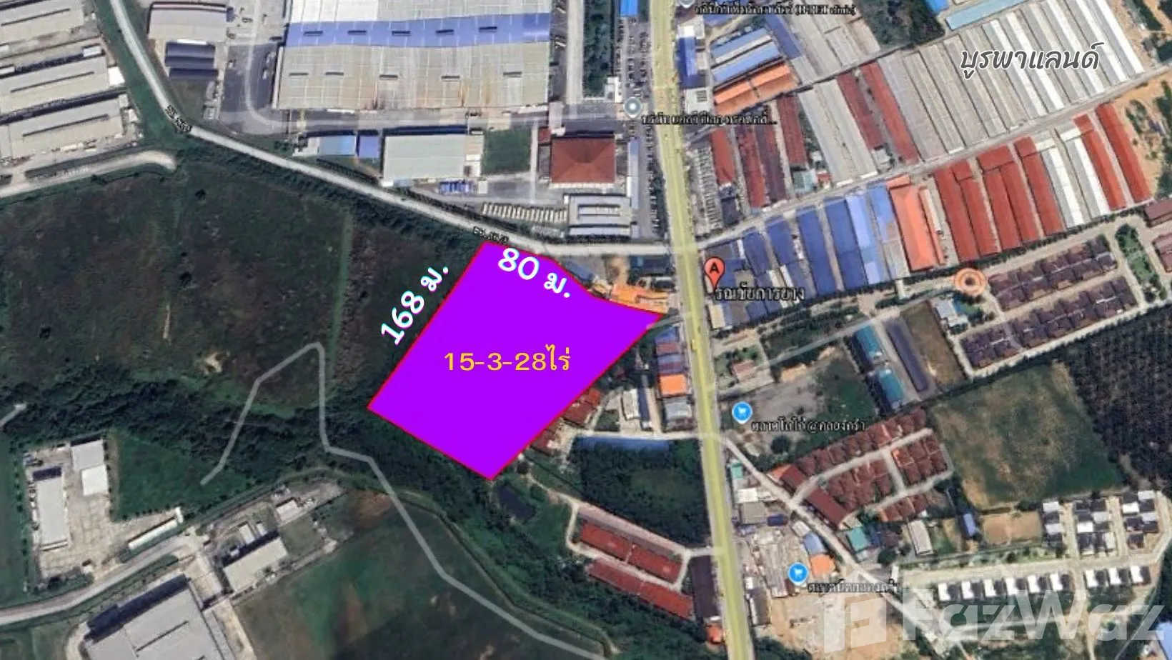 ขายที่ดิน 15-3-28 ไร่ สีม่วงเข้ม ปลวกแดงระยอง ทำเลธุรกิจ