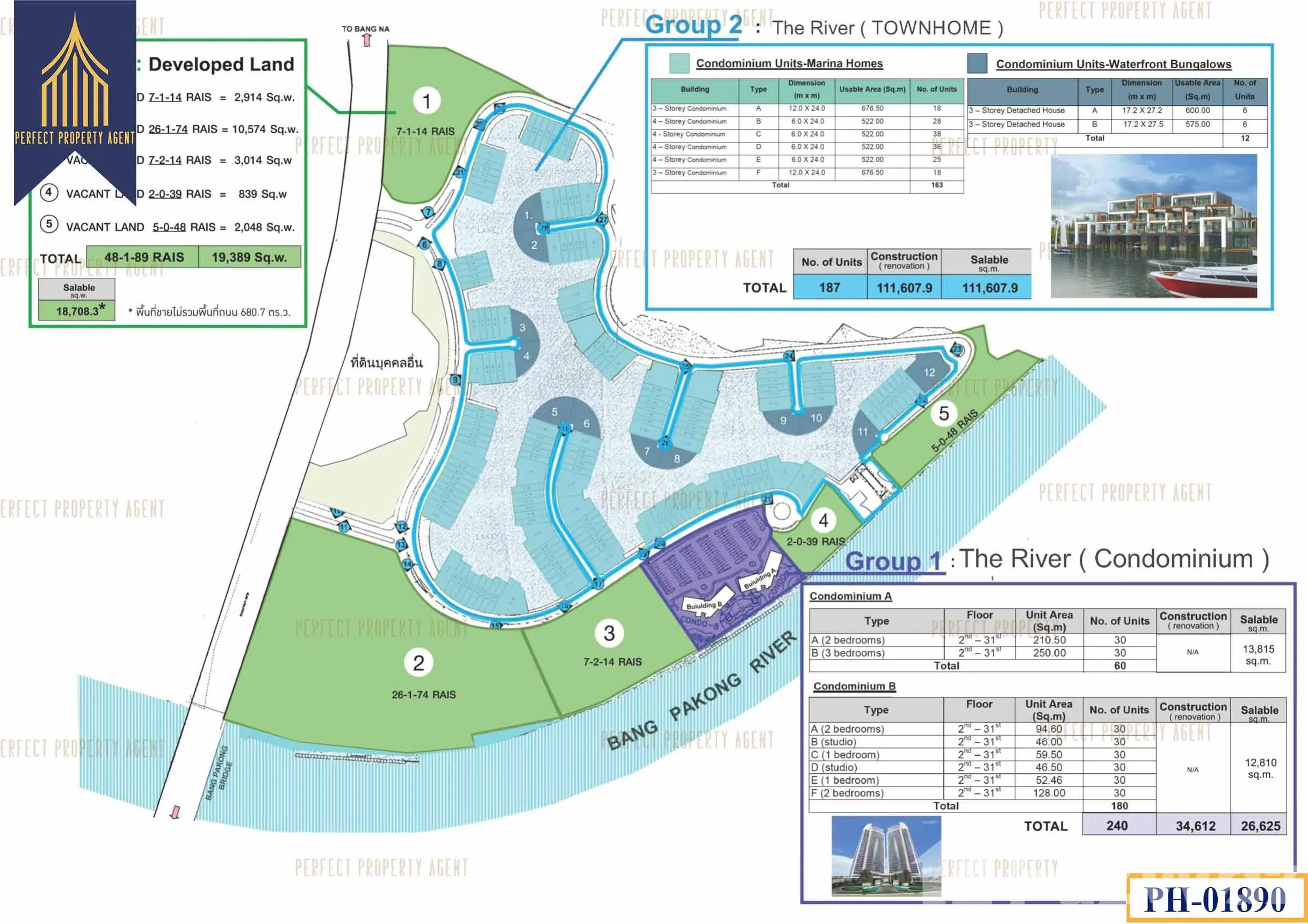 ขายที่ดิน ติดแม่น้ำบางปะกง พร้อมโครงการ คันทรี มารีน่า ซิตี้ บางปะกง บางนาตราด    Land for sale in Thailand, next to Bangpakong River (Bangna Trad Road) ที่ตั้ง  : ถนนบางนาตราด ตำบลบางปะกง อำเภอบางปะกง จังหวัดฉะเชิงเทรา   รหัสทรัพย์ (Ref no.) : PO-00026 เสนอขายในราคา 4,000,000,000 บาท   เนื้อที่ : 143 ไร่ (หน้ากว้างติดถนนบางนาตราด 600 เมตร ติดแม่น้ำบางปะกง 900 เมตร) พื้นที่ใช้สอย : 230,120 ตารางเมตร   รายละเอียด : ภายในโครงการมีเนื้อที่รวมทั้งหมด 143 ไร่ หน้ากว้างติดถนนบางนาตราด 600 เมตร และหน้ากว้างติดแม่น้ำบางปะกง 900 เมตร (เหมาะสำหรับนักลงทุน) ที่ดินและสิ่งปลูกสร้างภายในประกอบด้วย     1. คอนโด 2 อาคารเชื่อมต่อถึงกัน ติดแม่น้ำบางปะกง บนเนื้อที่ 7 ไร่ (อาคารละ 32 ชั้น) อาคาร A มีห้อง 2 ยูนิต/ชั้น รวม 60 ห้อง และ อาคาร B มีห้อง 6 ยูนิต/ชั้น รวม 180 ห้อง ห้องมี 2 types แบบ 3 ห้องนอน 5 ห้องน้ำ และ 3 ห้องนอน 4 ห้องน้ำ   2. บ้านเดี่ยว 3 ชั้น จำนวน 12 หลัง และ ทาวน์โฮม 3-4 ชั้น จำนวน 163 หลัง บนเนื้อที่ 63 ไร่ ทุกหลังติดทะเลสาบหมู่บ้าน มีที่จอดสปีดโบ้ท Speedboat ส่วนตัวทุกหลัง 3. พื้นที่เปล่า สำหรับสิ่งปลูกสร้างในอนาคต 5 แปลง รวม 48 ไร่ 4. ถนนรอบโครงการและสาธารณูปโภค รวม 25 ไร่   Land property for sale in Thailand, next to Bangpakong River, Bangna Trad Road (good property investment in Thailand)   Location: Bangna Trad Road, Bangpakong, Chachoengsao   Selling price: 4,000 million THB Land size:  143 rai or 230,120 sqm   Detail: Land size of 143 rai with vacant lands and buildings including   1. Two connecting condominium buildings A and B sited on the bank of Bangpakong river, with the vacant land for parking in front of buildings. (7 rai) Each building has 32 floor, building A has 2 units/floor (total 60 units) and building B has 6 units/floor (total 180 unit) 2. Three-storey detached house for 12 units and Three-storey and four-storey townhome for 163 units, all units are connected with the lake and have personal Speedboat parkings. (63 rai) 3. Vacant land 5 plots for future project. (48 rai) 4. Roads and servitude to give easement to all another land in the project. (25 rai) For more information please contact khun Mint +66972879364 (Lin e and Whatsapp available) Project and land for sale in Thailand for investors. It is closed to Bangpakong river, Suvarnabhumi Airport, Samutprakan, Chonburi, Bangna, Bangkok. (600m. bordering Bangna Trad Road and 900m. bordering Bangpakong River)   สถานที่ใกล้เคียง  - แม่น้ำบางปะกง Bangpakong River - ทางด่วน บูรพาวิถี (ยกระดับบางนา-ชลบุรี)  - สนามกอล์ฟ Lakeside Villa Golf Club - นิคมอุตสาหกรรมอมตะซิตี้ ชลบุรี Amata City Chonburi Industrial Esate - สนามบินสุวรรณภูมิ Suvarnabhumi Airport - ห้างเซ็นทรัล วิลเลจ Central Village - มอเตอร์เวย์ Motorway No.9 (ทางหลวงหมายเลข 9)   ทำเล/ย่าน : #แม่น้ำบางปะกง #ชลบุรี #บางนา #พัทยา #บางนาตราด   For more information please contact khun Mint +66972879364 (Line and Whatsapp available)   •พร้อมบริการจัดสินเชื่อ ให้คำปรึกษาฟรี โดยเจ้าหน้าที่มืออาชีพที่มีประสบการณ์• •มีให้เลือกทุกธนาคาร•   ♥ สนใจทรัพย์อื่นๆ ♥ (เว็บไซต์บริษัท)   สนใจติดต่อสอบถามรายละเอียดเพิ่มเติมและนัดเข้าชมได้ที่ Tel: 092-789-8246 คุณญา (รหัสตัวแทน A6400) Tel: 095-239-5639 Line ID : @yaperfect Add Line: /div> Tel: 097-287-9364 คุณมิ้นต์ (รหัสตัวแทน A6401) Tel: 095-235-9419 Line ID : mintpichsinee Add Line: mintpichsinee   •Perfect Property Agent บริการซื้อ vาย เช่า บ้าน คอนโด ที่ดิน โรงงาน และอสังหาริมทรัพย์ทุกประเภท•   Perfect Property Agent provides all real estate agency services in Thailand. (mainly in Bangkok, Samutprakan, Nonthaburi, Pratumthani, Chonburi) For any inquiry, please contact 