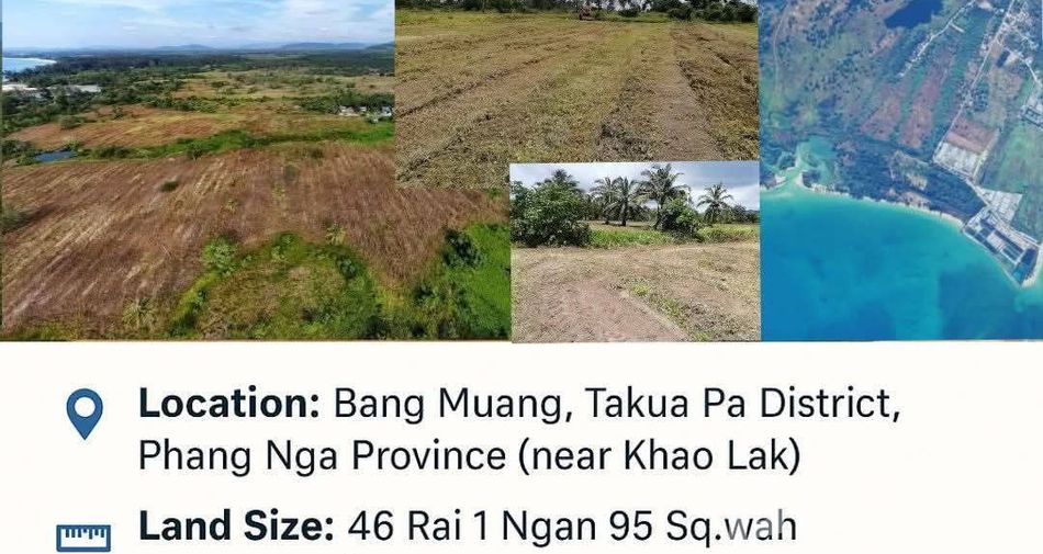 🌴 ขายที่ดินติดทะเล วิวสวย ห่างหาดเพียง 200 เมตร! 🚨 พื้นที่ใหญ่ 46 ไร่ เหมาะลงทุนสร้างรีสอร์ท – โครงการวิลล่าหรู 📍 ต.บางม่วง อ.ตะกั่วป่า จ.พังงา ใกล้เขาหลัก แหล่งท่องเที่ยวระดับโลก   📐 ขนาดที่ดิน: 46 ไร่ 1 งาน 95 ตร.วา (≈ 73,580 ตร.ม.) 💰 ราคา: 232,437,500 บาท (ไร่ละ 5 ล้าน)   ✅ ใกล้ทะเลเพียง 200 เมตร ✅ ที่ดินหน้ากว้าง เข้าถึงง่าย ติดถนน ✅ ใกล้โครงการหรูและสถานที่ท่องเที่ยวระดับพรีเมียม ✅ เหมาะสร้างโรงแรม รีสอร์ท วิลล่าติดทะเล หรือบ้านพักตากอากาศ   📍 พิกัดที่ดิน: [8.810065, 98.261882]   📞 สนใจติดต่อ: คุณบ๊อบบี้ (หลานเจ้าของโดยตรง) 📱 โทร: 086-340-5860 💬 LINE: 0863405860   🔖 เอกสารครบ โฉนดพร้อมโอนทันที 💼 รับนายหน้ามืออาชีพ – คอมมิชชัน 3%