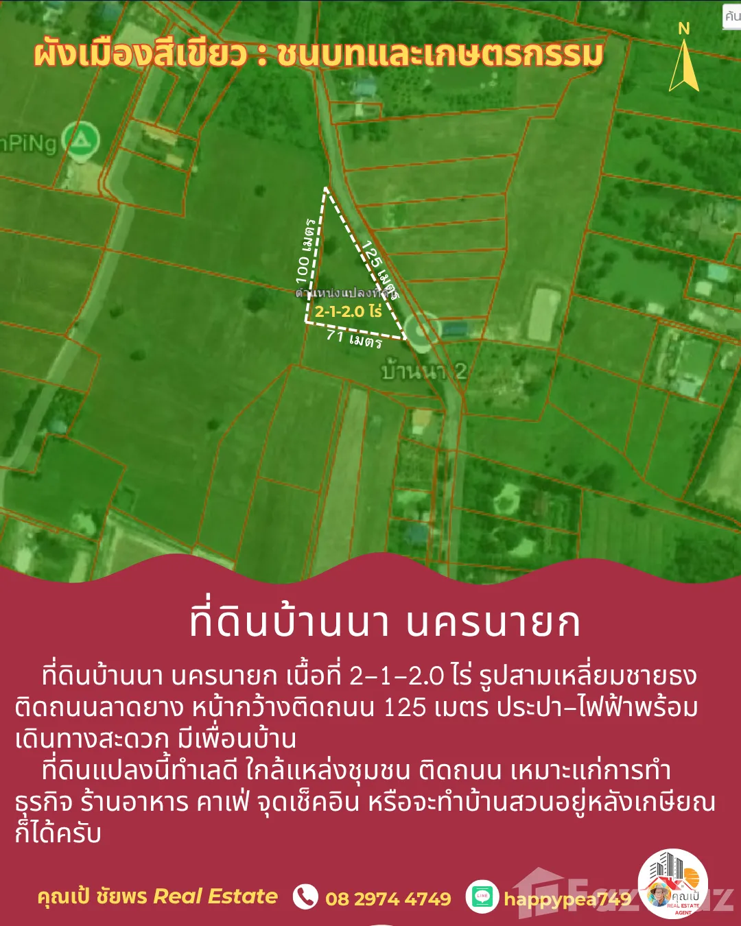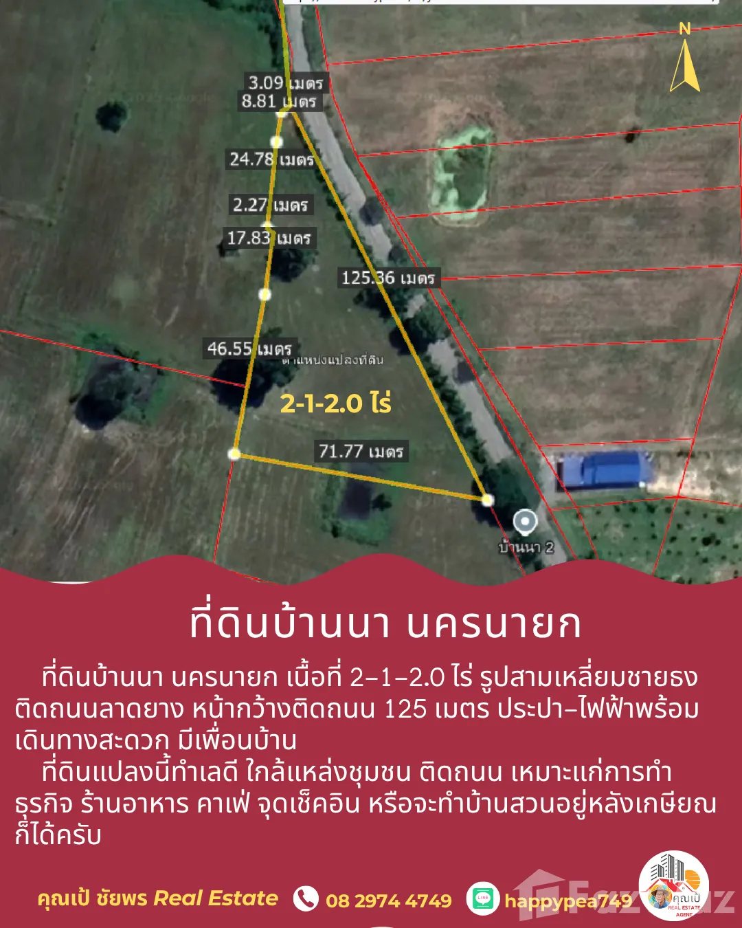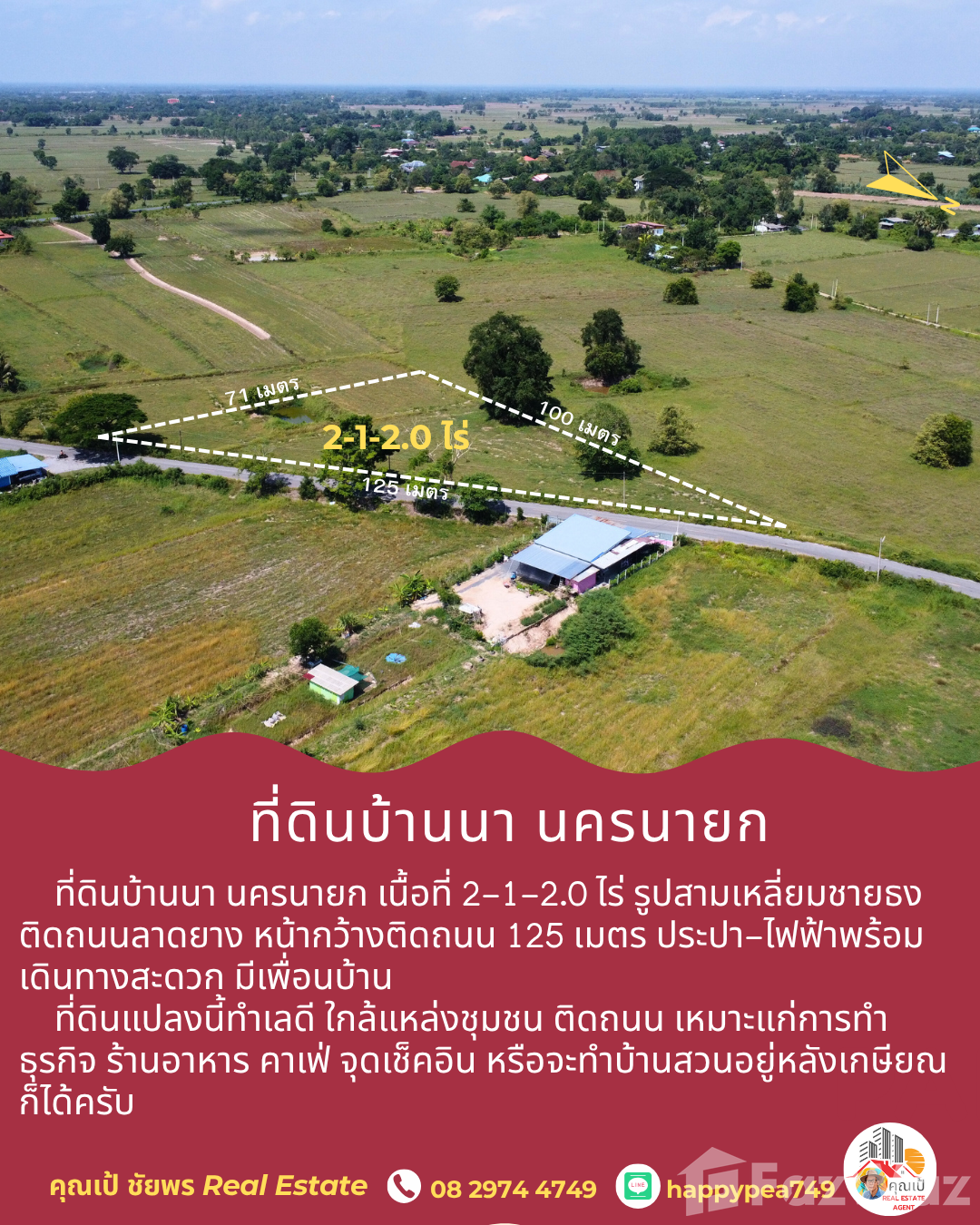 💰 ที่ดินบ้านนา นครนายก เนื้อที่ 2-1-2.0 ไร่ รูปสามเหลี่ยม ชายธง ติดถนนลาดยาง หน้ากว้างติดถนน 125 เมตร ประปา-ไฟฟ้าพร้อม เดินทางสะดวก มีเพื่อนบ้าน 💰 ที่ดินแปลงนี้ทำเลดี ใกล้แหล่งชุมชน ติดถนน เหมาะแก่การทำธุรกิจ ร้านอาหาร คาเฟ่ จุดเช็คอิน หรือจะทำบ้านสวนอยู่หลังเกษียณก็ได้ครับ💰 การซื้อที่ดินรูปสามเหลี่ยมควรพิจารณาถึงข้อดีข้อเสียอย่างรอบคอบ และควรพิจารณาถึงความเหมาะสมกับความต้องการและวัตถุประสงค์ของผู้ซื้อ หากสามารถปรับปรุงพื้นที่และจัดการกับข้อจำกัดต่างๆ ได้ ก็อาจเป็นทางเลือกที่น่าสนใจ💰 หากทำเลที่ตั้งดี มีความเจริญ มีสิ่งอำนวยความสะดวกครบครัน อาจพิจารณาซื้อได้แม้จะเป็นที่ดินรูปสามเหลี่ยม 💰 การปรับปรุง: หากตัดสินใจซื้อที่ดินรูปสามเหลี่ยม ควรพิจารณาถึงการปรับปรุงพื้นที่ เช่น การปรับรูปร่างให้เป็นสี่เหลี่ยม การจัดสวน หรือการสร้างรั้ว เพื่อลดผลกระทบด้านลบ🚧 ที่ตั้ง : ตำบลบ้านนา อำเภอบ้านนา จังหวัดนครนายก 26110 📍 การปักหมุดนำทาง Google Map : br />🏡 สถานที่สำคัญใกล้เคียง    ตลาดสดบ้านนา        5 ก.ม.    โรงพยาบาลบ้านนา        4.6 ก.ม.    แยกบ้านนา-แก่งคอย        4 ก.ม.    🧭 สีผังเมือง : สีเขียว ที่ดินประเภทชนบทและเกษตรกรรม🗺️ ข้อมูลที่ดิน : เป็นโฉนดที่ดิน น.ส.4 ครุฑแดง จำนวน 1 โฉนด เนื้อที่ 2 ไร่ 1 งาน 2.0 ตารางวา หรือ 902 ตารางวา 🏷️ 💰 ข้อมูลราคาขาย :  2,480,500 บาท รวมค่าโอนกรรมสิทธิ์แล้ว  (2,750 บาท/ตร.วา)    🌟 โอกาสดีในการลงทุนที่คุณไม่ควรพลาด! หายากแล้วทำเลดีๆแบบนี้ 🔑📢สอบถามรายละเอียดเพิ่มเติม พูดคุยได้ สบายๆ เป็นกันเอง ติดต่อ 🤵คุณเป้ ชัยพร Real Estate Agentรับฝาก ซื้อ-ขาย ที่ดินสวย เพื่อการลงทุน ธุรกิจ การเกษตร อุตสาหกรรม และอยู่อาศัย📞Tel. 08 2974 4749 📟 Line : happypea749  คลิก br />🎉ดูที่ดินแปลงอื่นๆbr />📘Facebooksbr />#ที่ดินบ้านนา #ที่ดินบ้านนานครนายก #ที่ดินติดถนน #ที่ดินนครนายก #ที่ดินชายธง #นักลงทุนที่ดิน #ที่ดินสามเหลี่ยม #ที่ดินเกษียณ #จุดเช็คอิน #ขายที่ดินนครนายก