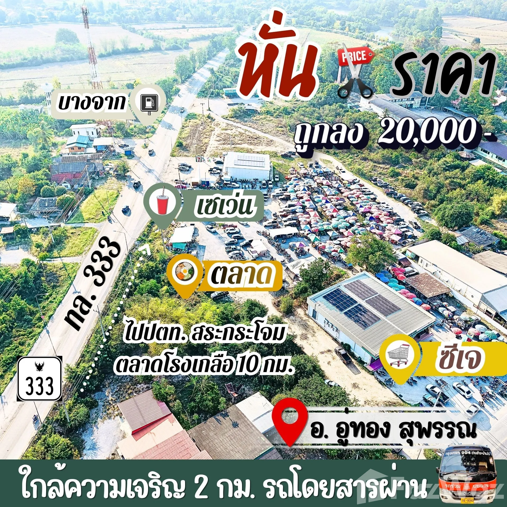 ที่ดินอู่ทองในเขตเทศบาล🔥งานละ 170,000🔥มีน้ำไฟ ฟรีโอน